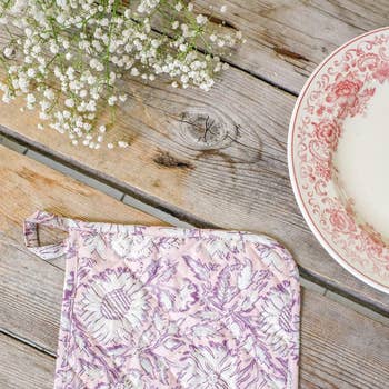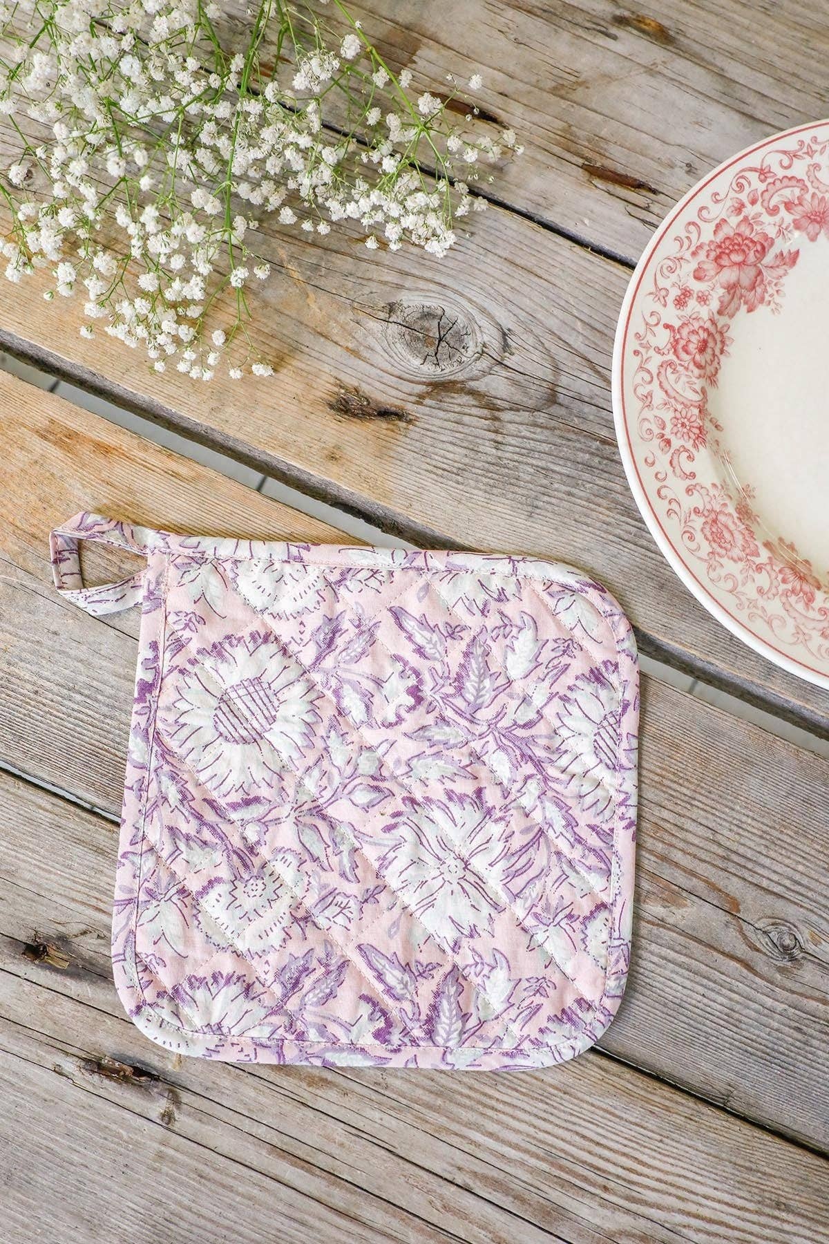100% bomull/ flerfärgad. Bomullsfiberisolering/handgjord. Storlek: 12" x 7". Tryckta båda sidor.