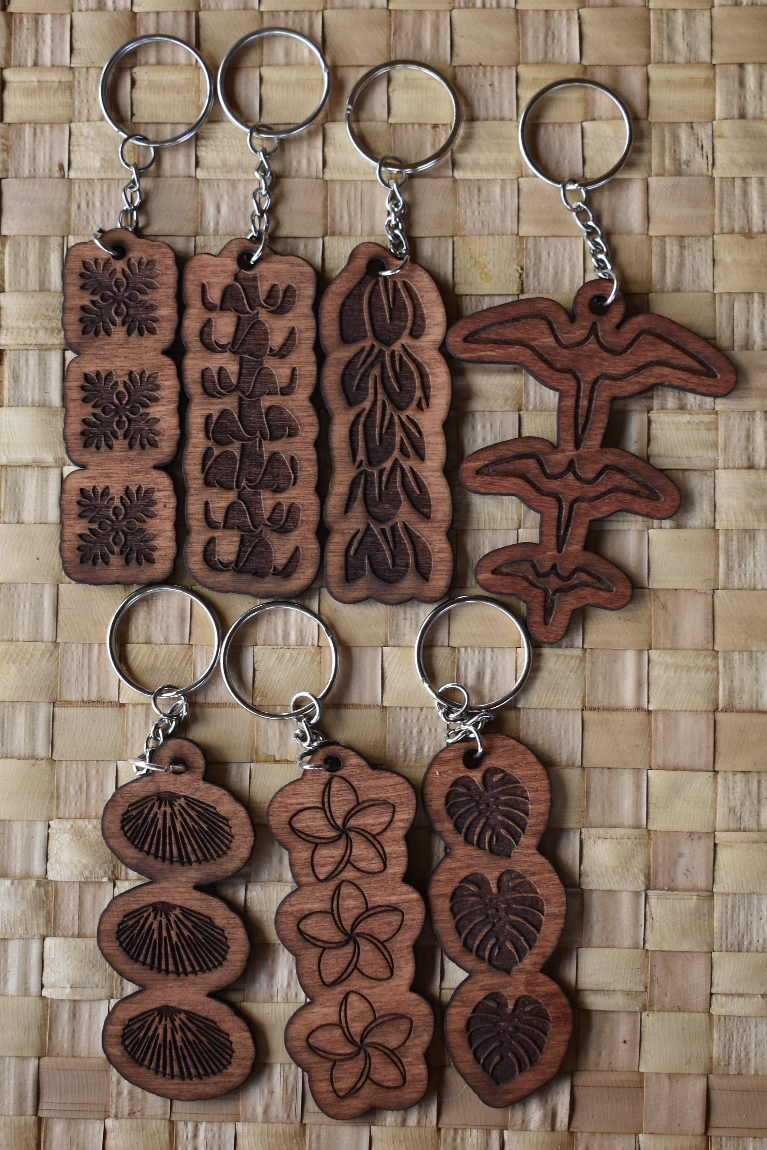 Handgjord på Hawai'i, denna vackra klämma finns i olika stilar och färger. Med motiv som plumeria, monstera, iwa-fåglar och puakenikeni, tillför dessa klämmor en touch av aloha till varje look. Klämman är cirka 10 cm lång och tillverkad på Hawai'i. Eftersom produkten är naturlig är varje klämma unik, och träets färg och nyans kan variera. Färgerna på klämmorna varierar, och du får en slumpmässig blandning av neutrala toner och några färgglada.