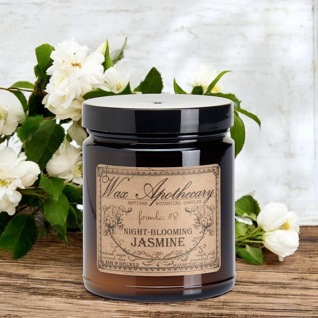 Nattblommande jasmin 6 oz botaniskt ljus bärnstensfärgad glasburk
