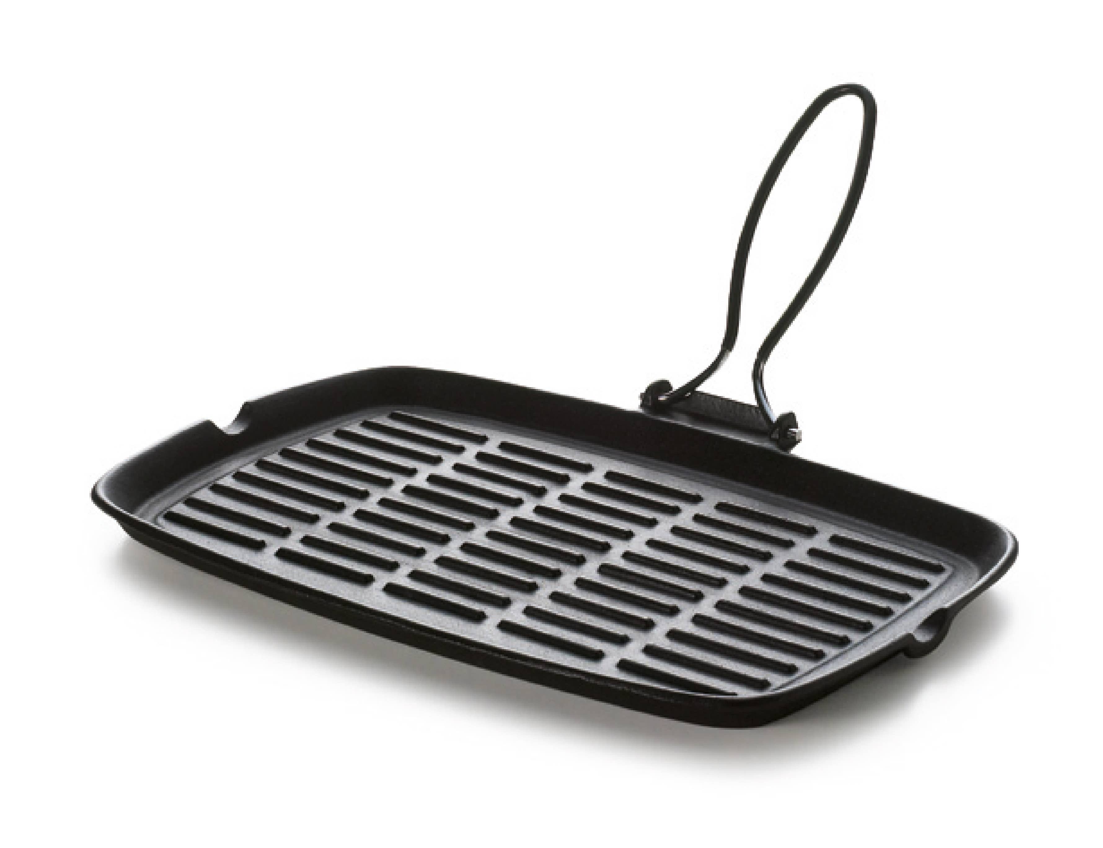 Grillpanna. Den fyrkantiga Dieta-Grill-pannan är perfekt för hälsosam tillagning av kött, fisk och grönsaker. Tillverkad i slitstarkt emaljerat gjutjärn med ett greppvänligt handtag av stål täckt med halksäker gummi. Pannan har även sidohällpipar för enkel hantering av vätskor. Italiensk design av Bruno Rossio. Mått: 24 x 24 cm. Diskmaskinssäker.