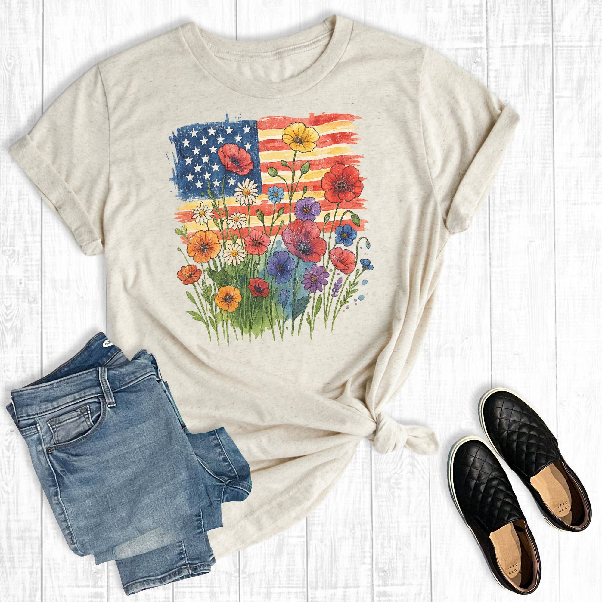 4 juli patriotisk flagga på grund av de modiga grafisk t-shirt