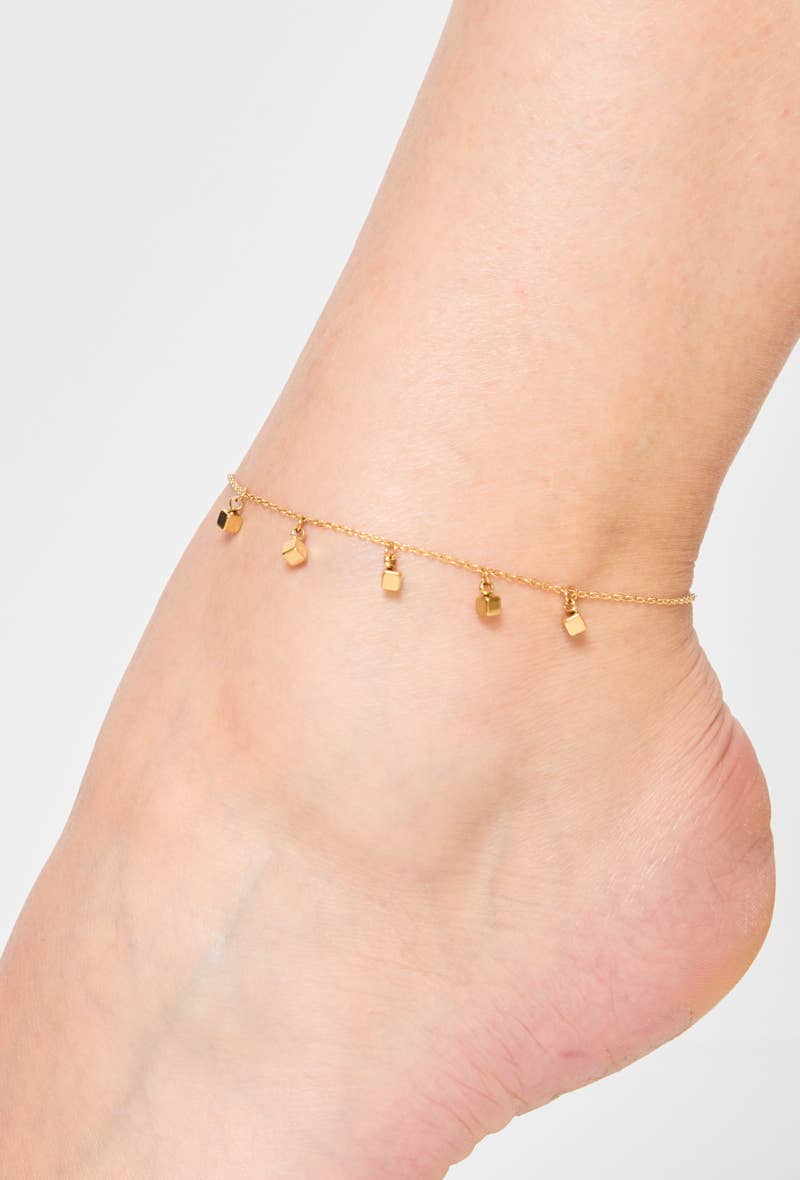 Fotlänk i rostfritt stål. Vattentålig och blir inte mörk. Garanterat fri från nickel, kadmium och blysalt.