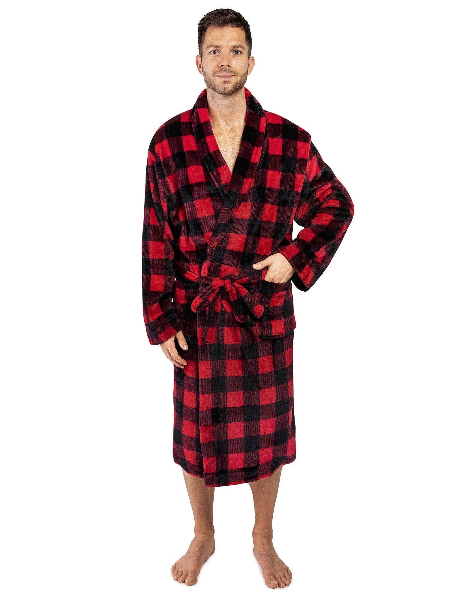 Vår Premium Fleece Morgonrock för Kvinnor är mjuk mot huden, lätt och håller dig varm. Vi pryder morgonrocken med ett rutigt mönster för att ge den en klassisk känsla! * PERFEKT PASSFORM OCH FUNKTIONELL Kommer med ett midjeband så att du kan justera för perfekt passform och 2 sidofickor för att hålla alla dina nödvändigheter! Sjalkrage är en klassiker och håller din nacke bekväm och varm. Lång morgonrock med långa ärmar för mjuk och mysig värme efter spa, bad eller dusch. * HÖG KVALITET OCH HÅLLBAR KONSTRUKTION Tillverkad med 260 GSM av 100% premium mikrofiberpolyester, denna spabadrock är mjuk, lätt men ändå hållbar. * TILLGÄNGLIG I 2 STORLEKAR: Small/Medium (US 6-10) | Total längd: 120 cm | Axel: 48 cm | Ärmlängd: 56 cm | Manschett: 18 cm || Large/X-Large (US 12-16) | Total längd: 124 cm | Axel: 53 cm | Ärmlängd: 56 cm | Manschett: 19 cm | Vänligen mät innan köp för perfekt passform! * LÄTT ATT SKÖTA Tvätta separat i kallt vatten, torktumla på låg värme | Denna mångsidiga morgonrock blir den perfekta presenten till familj, vänner, mamma, flickvän. Även en utmärkt födelsedags-, mors dag- eller julklapp.