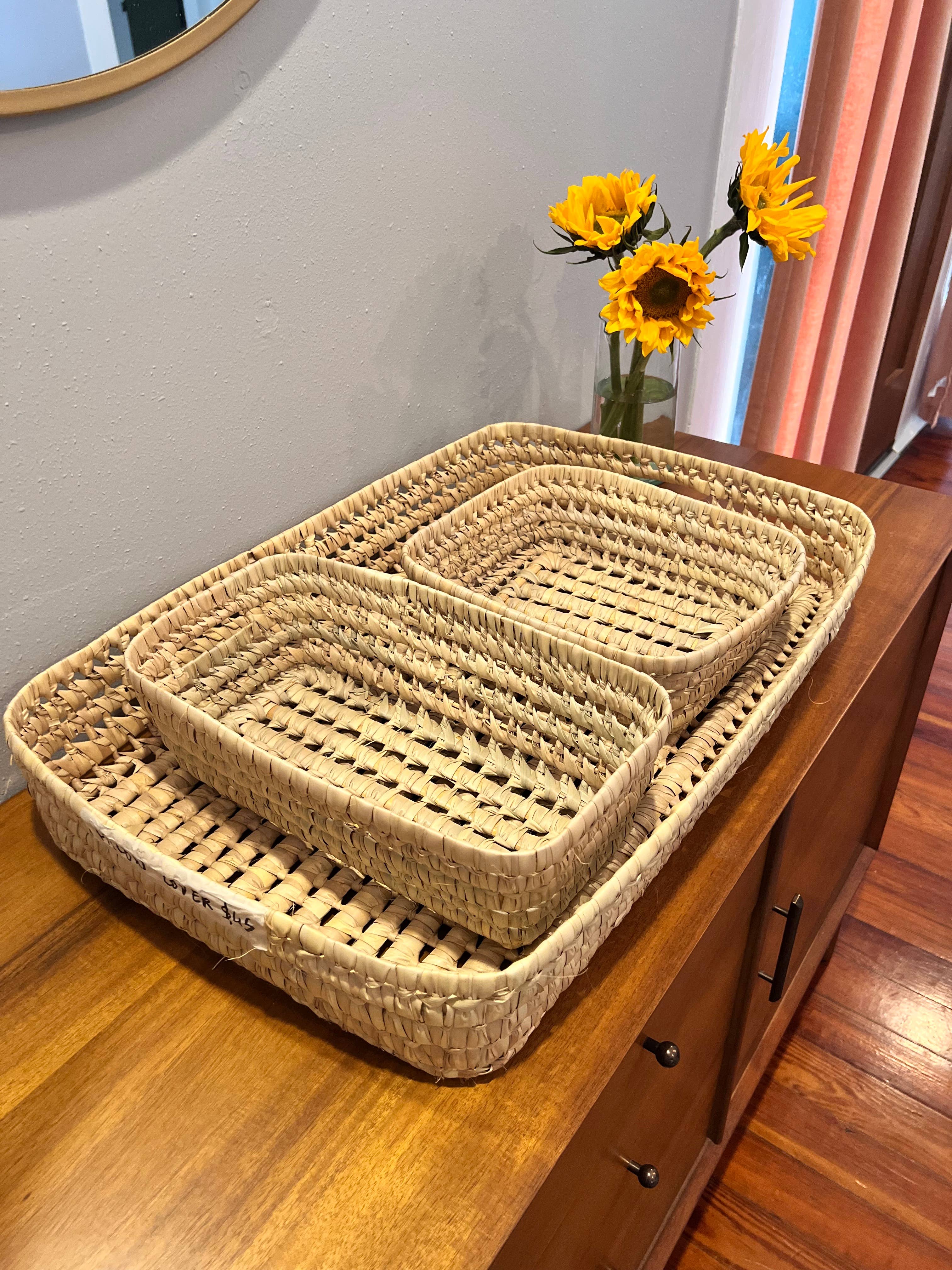 I förpackningen ingår: - 2 XL korgar: 86 cm höga x 46 cm djupa - priset är 90 USD styck Denna XL-korg kan användas till tvätt, förvaring av handdukar, leksaker eller vad du än kan tänka dig! Korgen är handgjord i Senegal av lokala hantverkare och är tidlös i sin design. Den är vävd av halm och återvunnen plast. Observera: Alla våra produkter är handgjorda, känsliga och unika. De är inte perfekta och kan ha små defekter på grund av den hantverksmässiga tillverkningen. De kan inte jämföras med massproducerade varor. Produkter kan variera något i storlek och design jämfört med bilderna.
