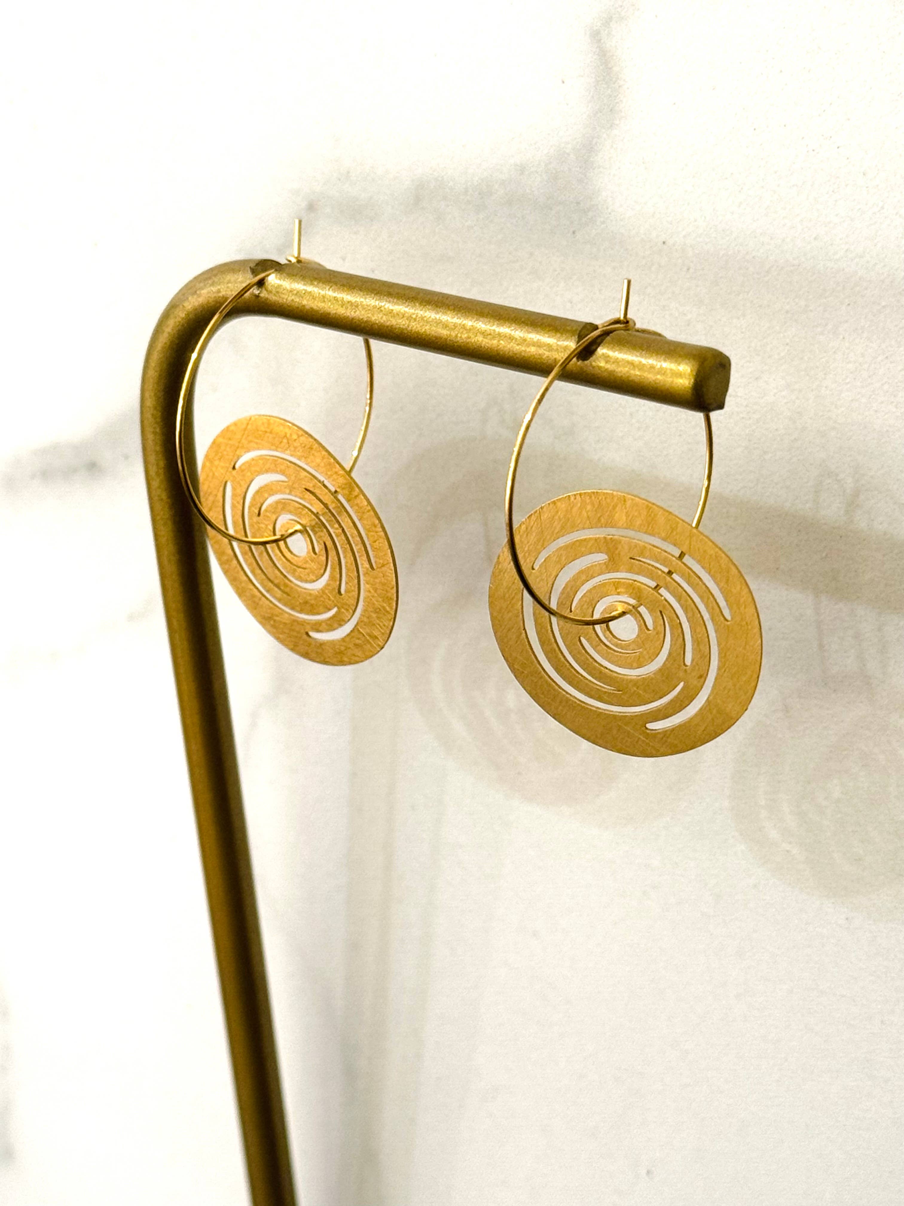 CASSETTE - Mobius Abstrakta Örhängen Färg: Borstad Guld Material: Rostfritt Stål (14k Guldpläterad) VATTENTÄT Mått: 36mm x 35mm Nickel- och blyfria (HYPOALLERGENA) CC