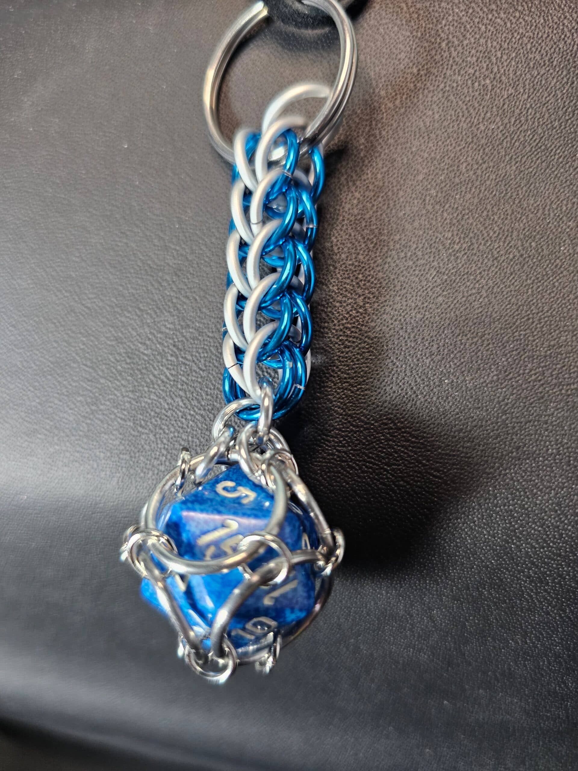 Perfekt för spelare, samlare och alla som vill lägga till en touch av fantasi till sin vardagsbäring, är Trapped D20 Keychain Byzantine både en funktionell artikel och en konversationsstartare. Trapped D20 Keychain har en 20-sidig tärning (D20) innesluten i en robust ringbrynjeväv, vilket ger den utseendet av att vara "fångad". Denna nyckelring är både funktionell och dekorativ, vilket gör den perfekt för bordsrollspelare som vill bära med sig en del av sin spelvärld vart de än går. Den intrikata ringbrynjan ger en säker men ändå stilfull hållare för tärningen, som blandar medeltidsinspirerat hantverk med modern spelcharm.