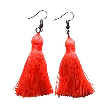 Superlätta tofsörhängen handgjorda i Guatemala. Varje numrerad färgkombination finns i våra FEM stilar: loop, knot, infinity, twist och nypa. Knut och slinga - 4,5 tum lång Nyp och vrid - 5 tum lång Oändlighet - 5,5 tum lång