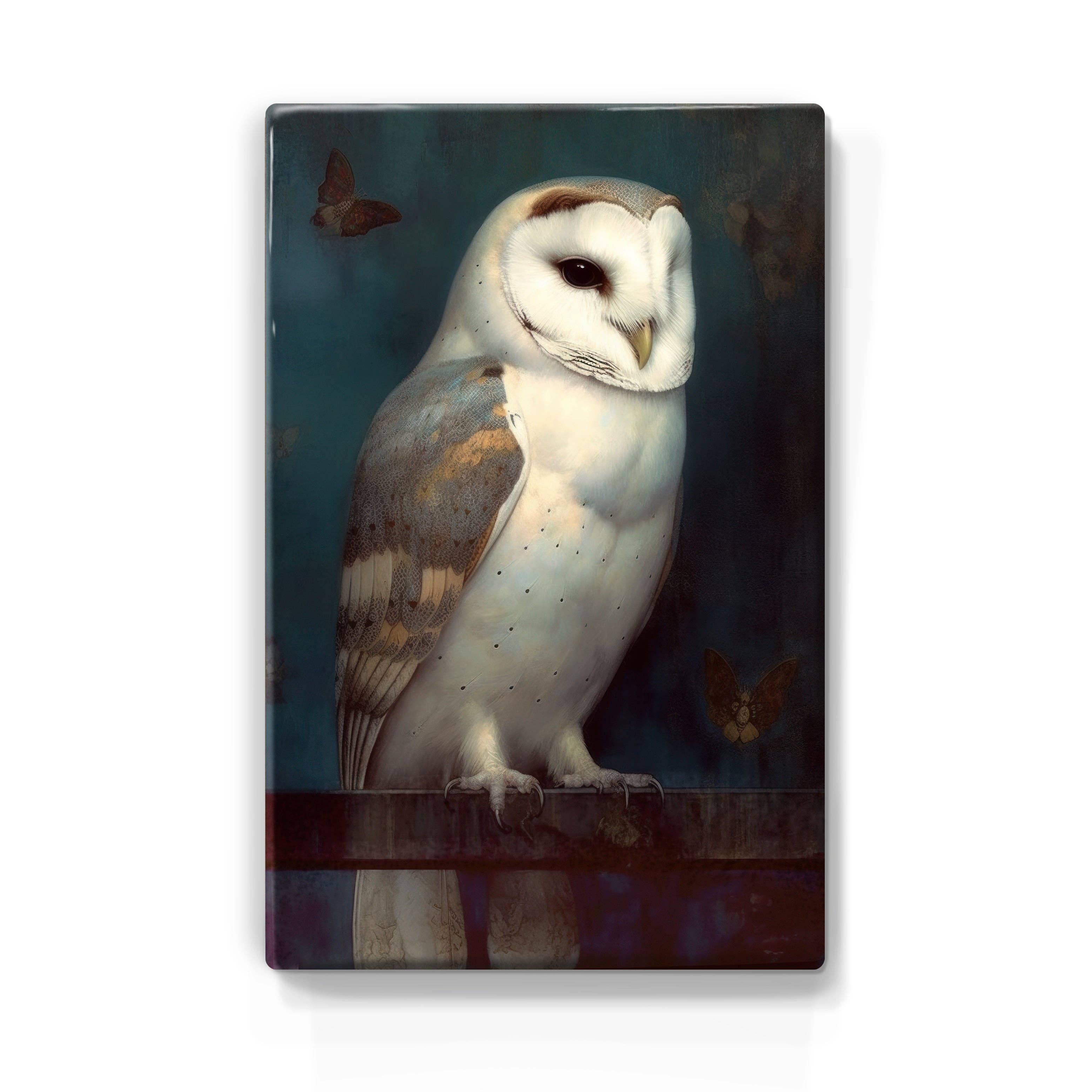 Laqueprint uggla med vita rosor – handlackerad – 19,5 x 30 cm – LP395