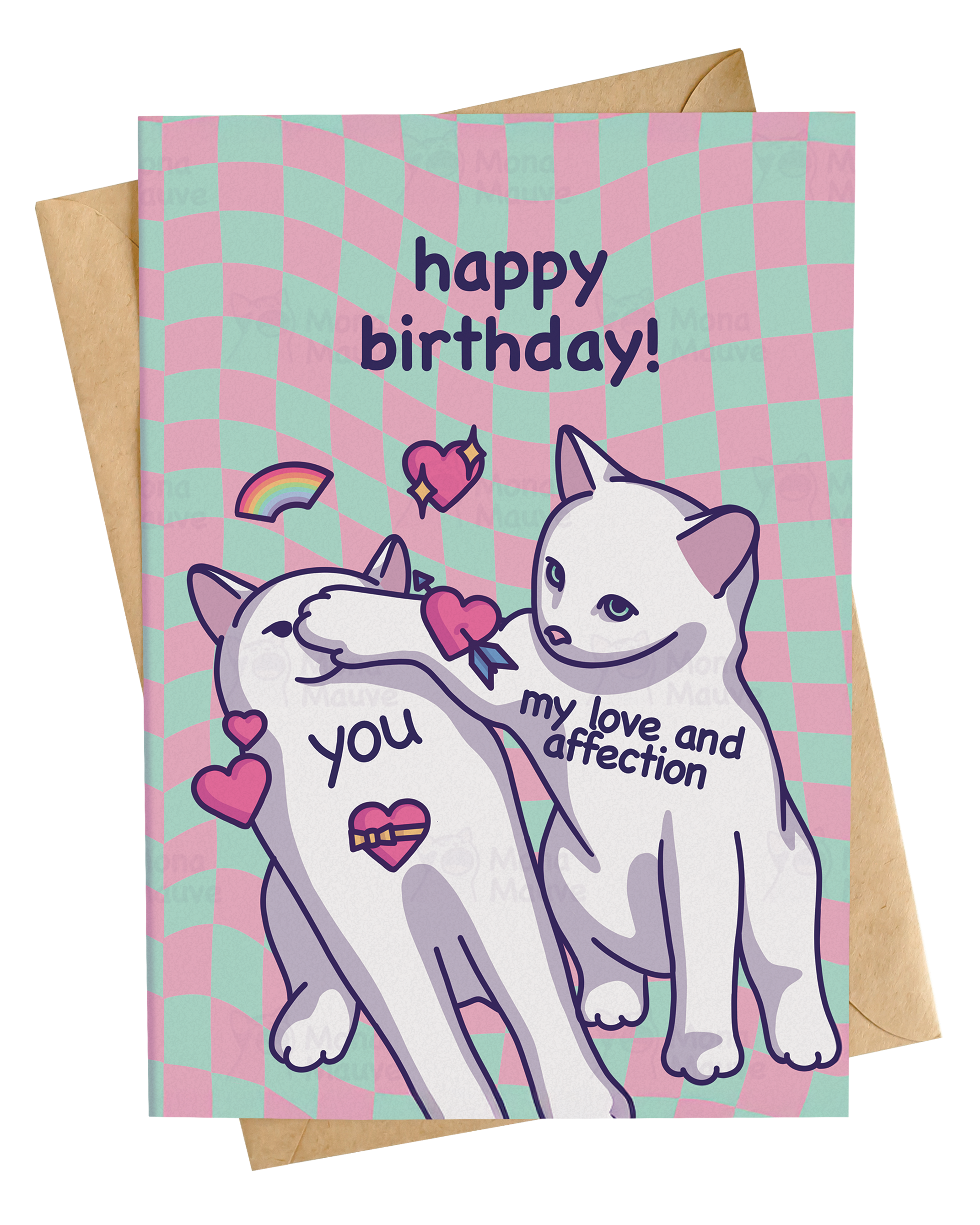 * Storlek: A6 (10,5 x 14,8 cm) med ett C6-kuvert (11,4 x 16,2 cm) * Designad av Mona Mauve * Inkluderar ett brunt kraftkuvert * Levereras i en biologiskt nedbrytbar displaypåse redo att säljas! * Tom insida * Tryckt på premium tungt matt kartong (300 gsm) Copyright © Mona Mauve Alla rättigheter förbehållna