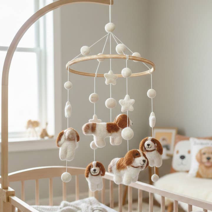 Upptäck vår charmiga babymobil i ullfilt med uggledesign! 🌟 Mobilen har en träram och mjuk bomullstråd, vilket garanterar oändlig glädje för din lilla.