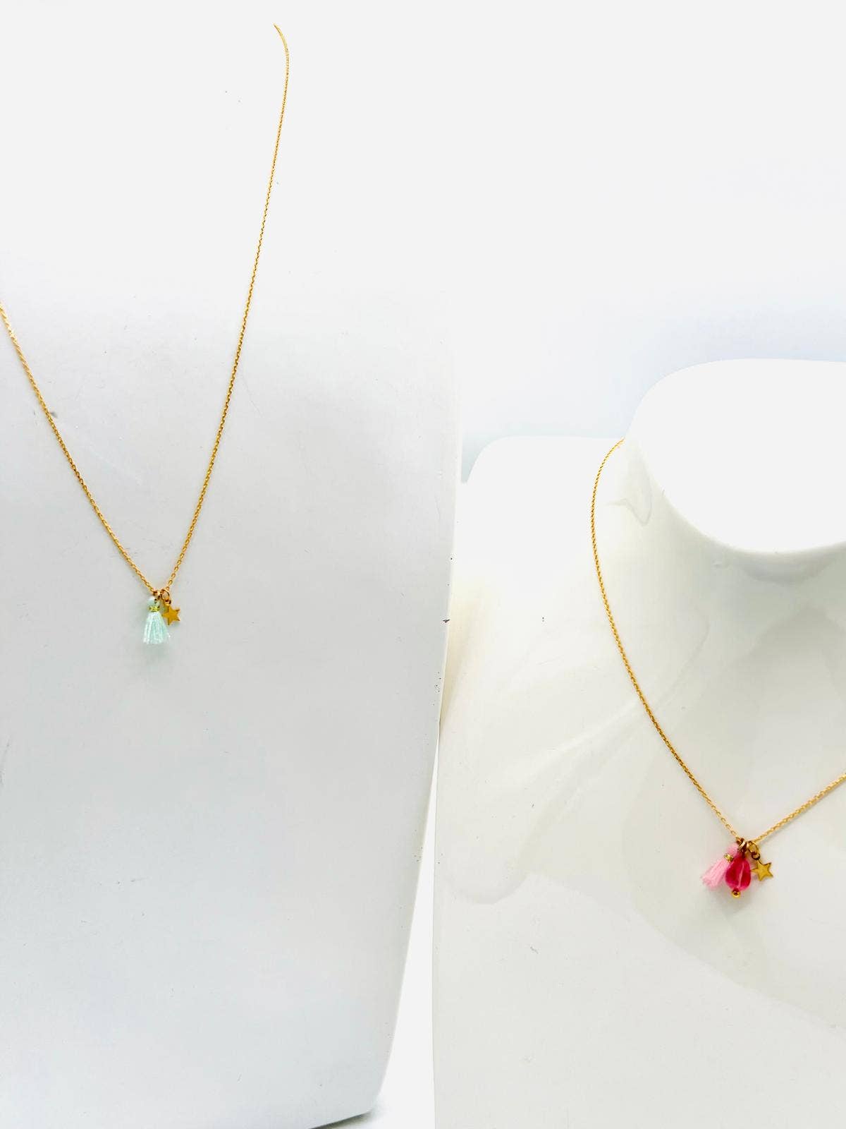 Detta raffinerade smycke består av en guldkedja dekorerad med ljusa pärlor, som erbjuder en subtil kontrast som lockar ögat. Det korsformade hänget lägger till en andlig och sofistikerad dimension till detta mästerverk. Detta halsband är perfekt för speciella tillfällen samt för att förbättra din vardagliga outfit med en touch av elegans. Kedjan är 45 cm lång och hänget är 2 cm långt.