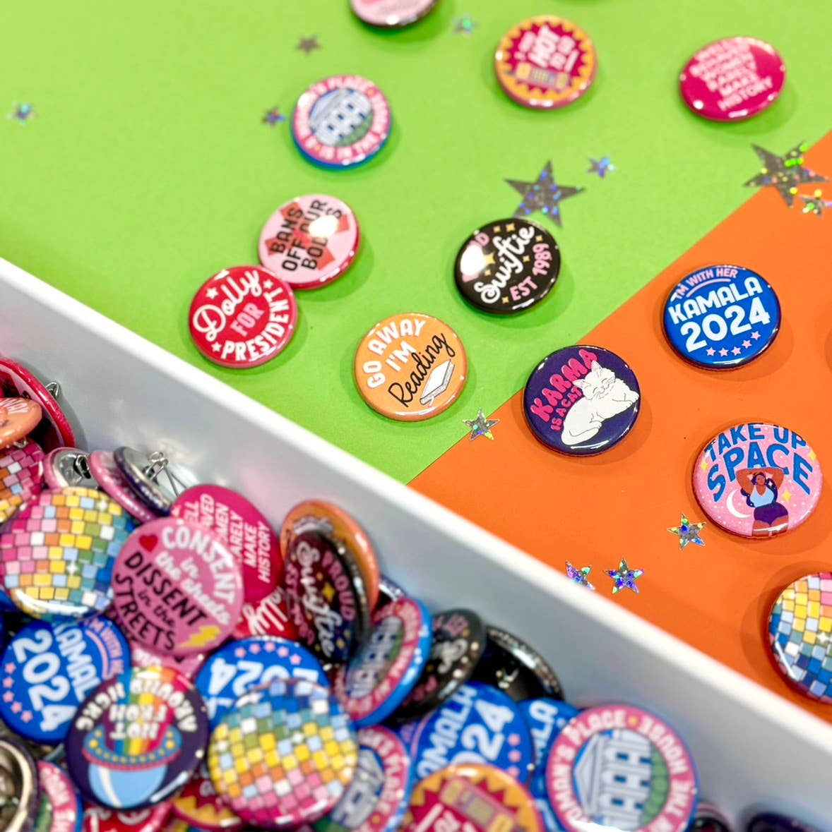 Vi älskar nålarna och det gör våra kunder också. Underbara designer och budskap. Nya designer släpps ofta och vi kommer definitivt att beställa igen snart!