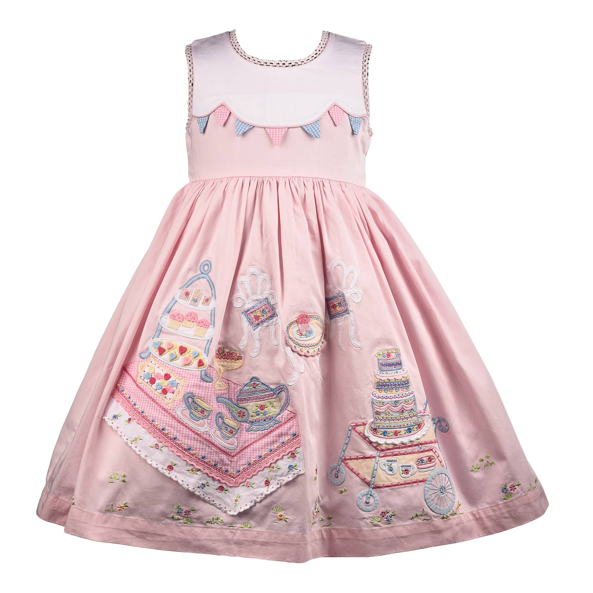 100% bomullsvävd fjärilsbroderad klänning för flickor.