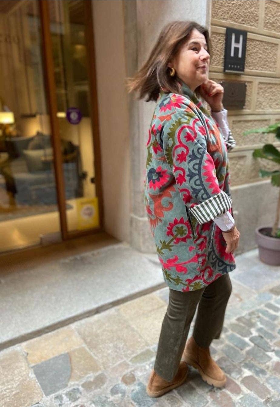 Kimono med blommigt lapptäcke för vår och sommar