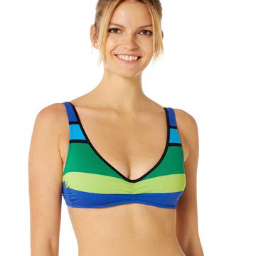 Denna vadderade bikinitopp är en triangel med justerbara remmar som du kan styla på olika sätt.