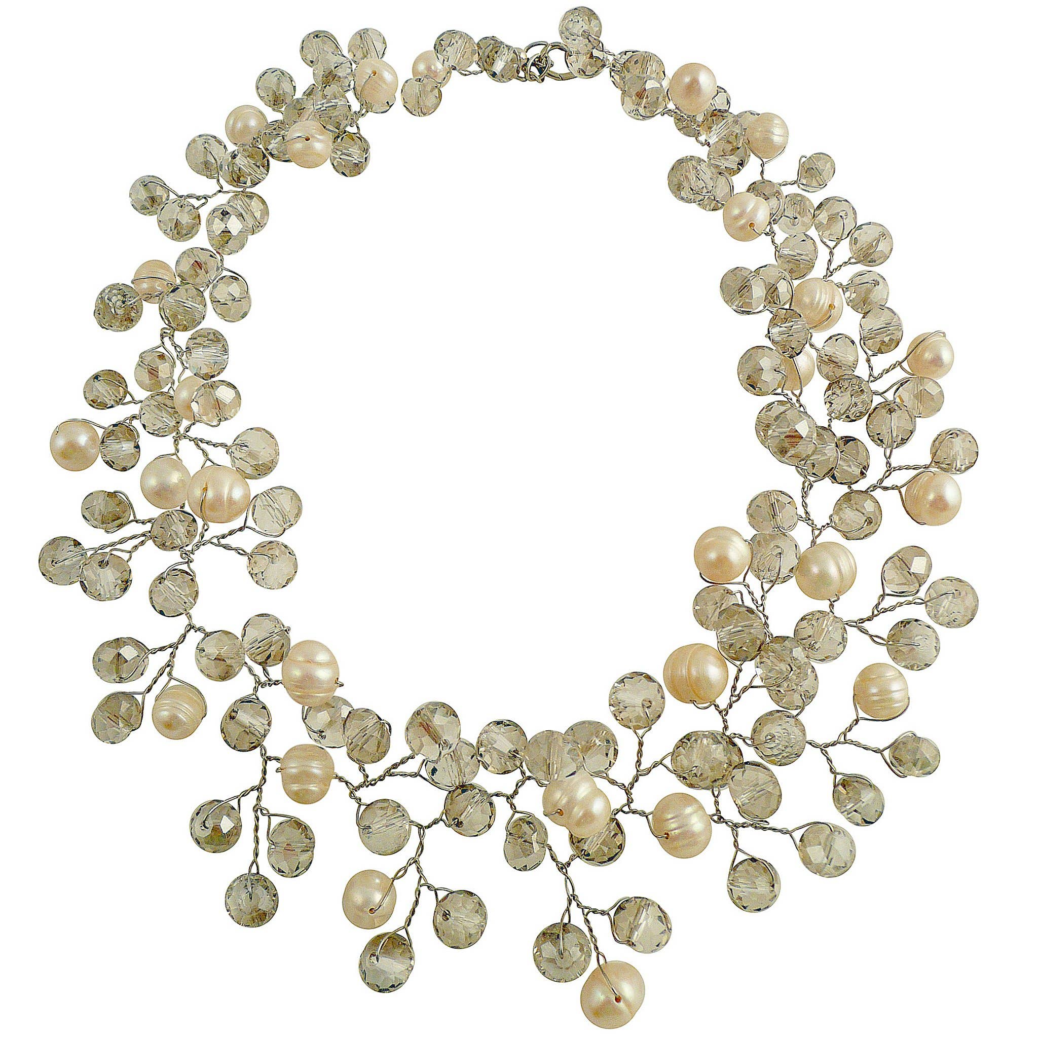 Wire Arbete Armband. Sötvattenspärlor, Glaspärlor, Metall fynd. Ca. 19cm med 5cm förlängare.