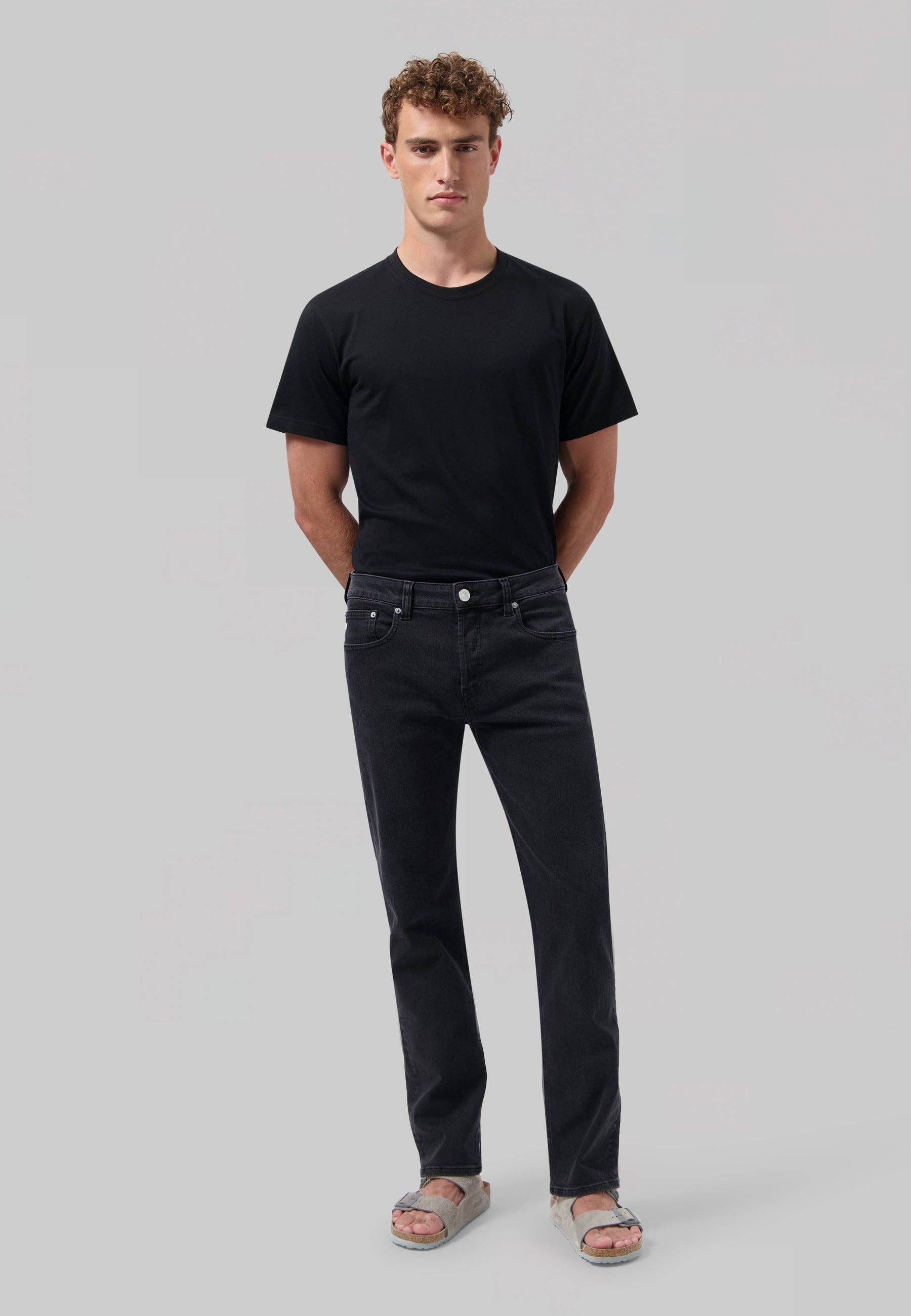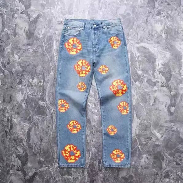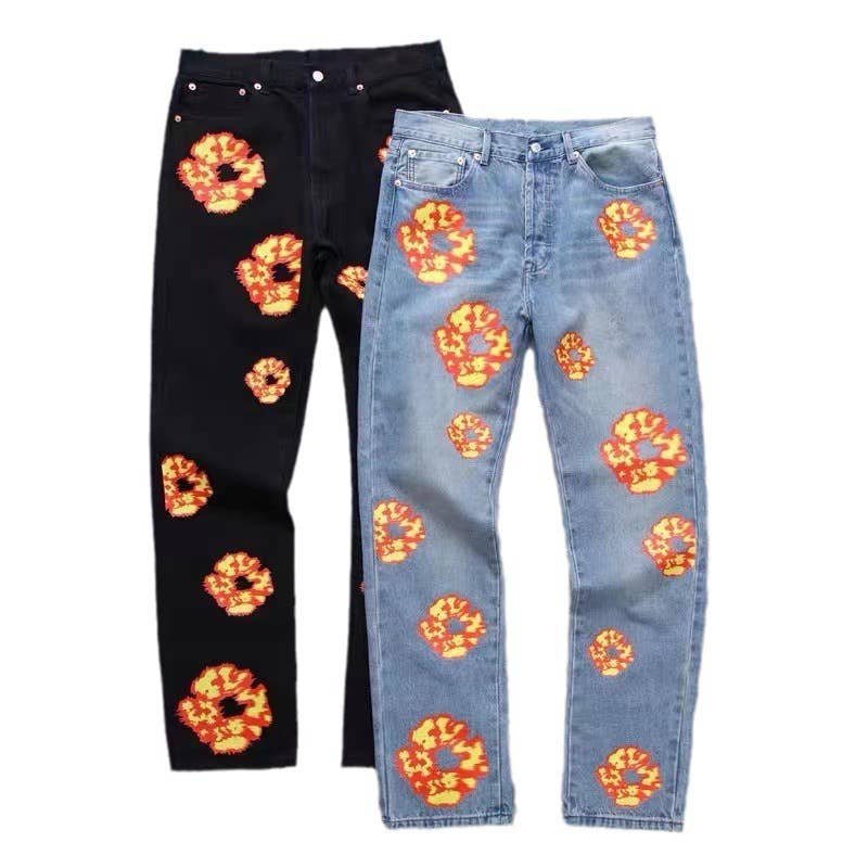 Broderade slitna jeans herr slim fit skinny jeans