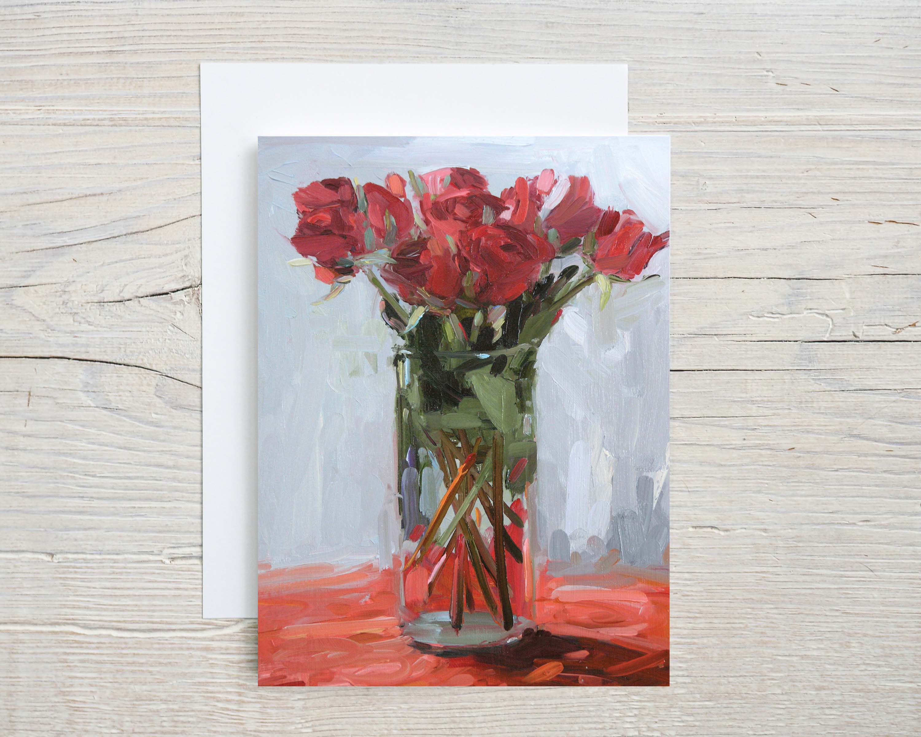 Storlek A2-kort och vitt kuvert. Singletkort kommer förpackade i klar förseglad cello. Papper är Tango 12 pt C1 och kuvert är Cougar 60 # ogenomskinlig vellum. Cello väskor är Eco Clear Bags - Komposterbara! Alla anteckningskort är tomma inuti - väntar på ett meddelande:)