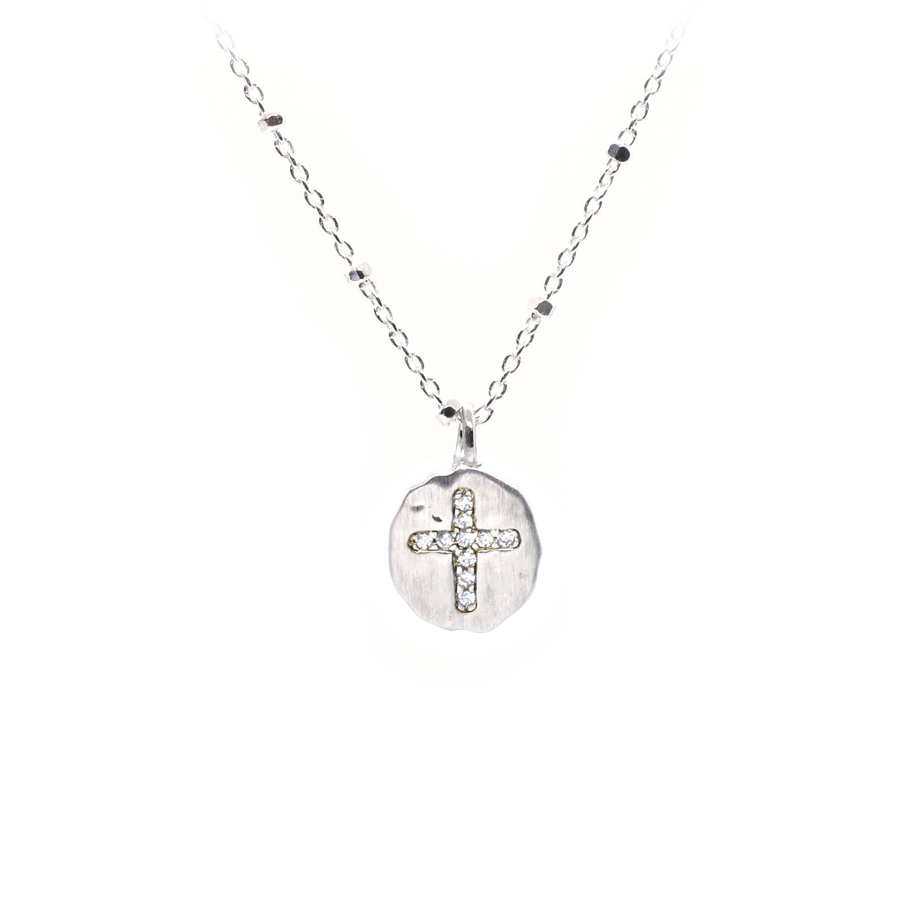 5/8 "(15 mm) Klassiskt CZ korshänge på 16-18" kabel eller Saturn-kedja. Finns i Sterling Silver och Guldpläterad Sterling