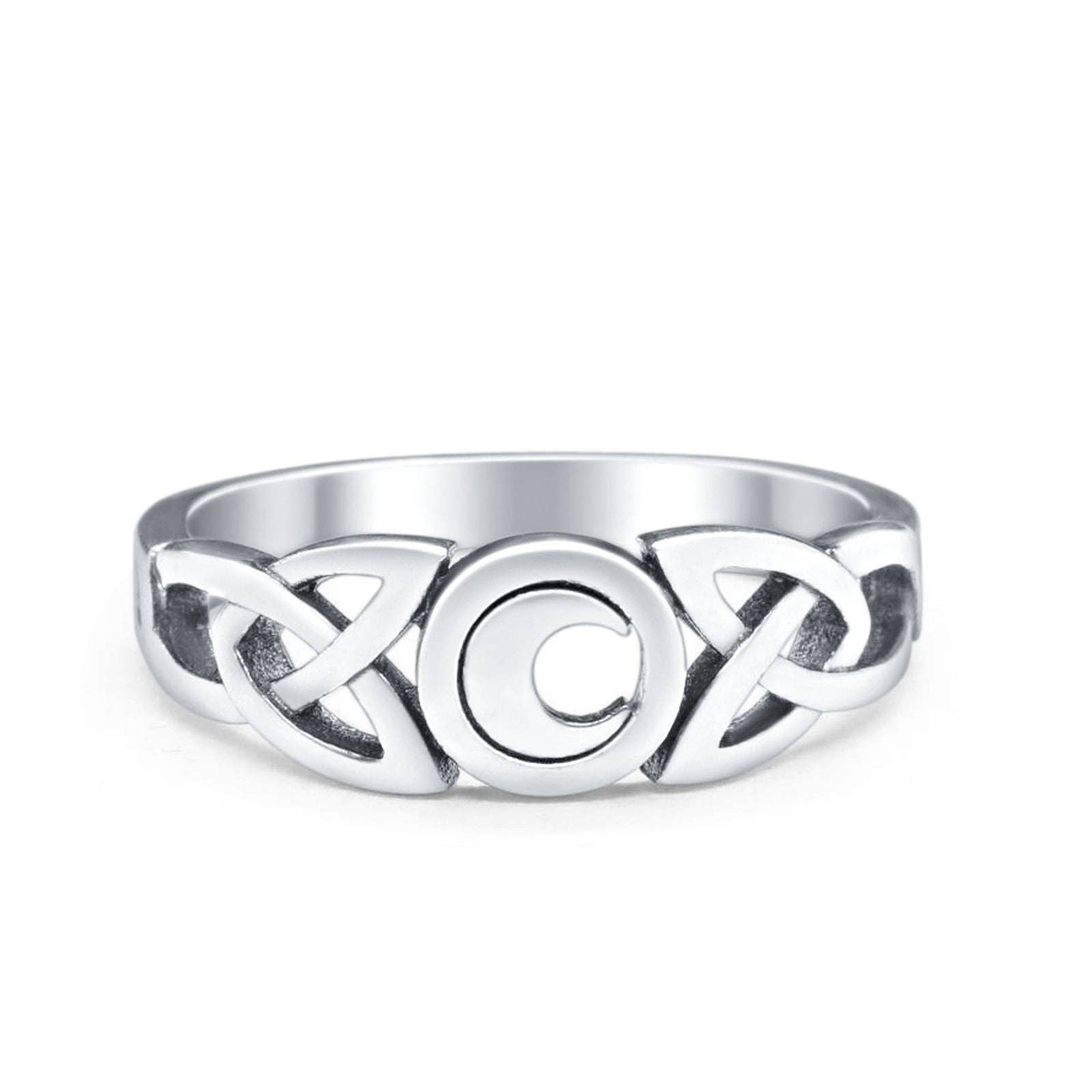 ☉ Metalltyp: Sterling Silver. ☉ Metallstämpel eller kännetecken: .925 ☉ Metallrenhet: 92,5% Sterling. ☉ Ansiktsmätningar från söder till norr: 5,5 mm (0,21 ”) Celtic Crescent Moon Band är en fängslande grossistprodukt som vackert smälter samman keltisk symbolik med månens himmelska lockelse. Detta förtrollande band har en invecklad design som visar en halvmåne med keltiska knutar. Halvmånen symboliserar tillväxt, intuition och livets ständigt föränderliga cykler. Tillverkad med noggrann uppmärksamhet på detaljer, denna ring visar elegansen i keltiskt konstnärskap och månens tidlösa lockelse. Celtic Crescent Moon Band finns i olika storlekar och är ett mångsidigt tillbehör som ger en touch av mystik och kulturell betydelse till alla ensembler. Oavsett om den bärs ensam eller i kombination med andra ringar, är det ett meningsfullt och elegant tillskott till alla smyckekollektioner.
