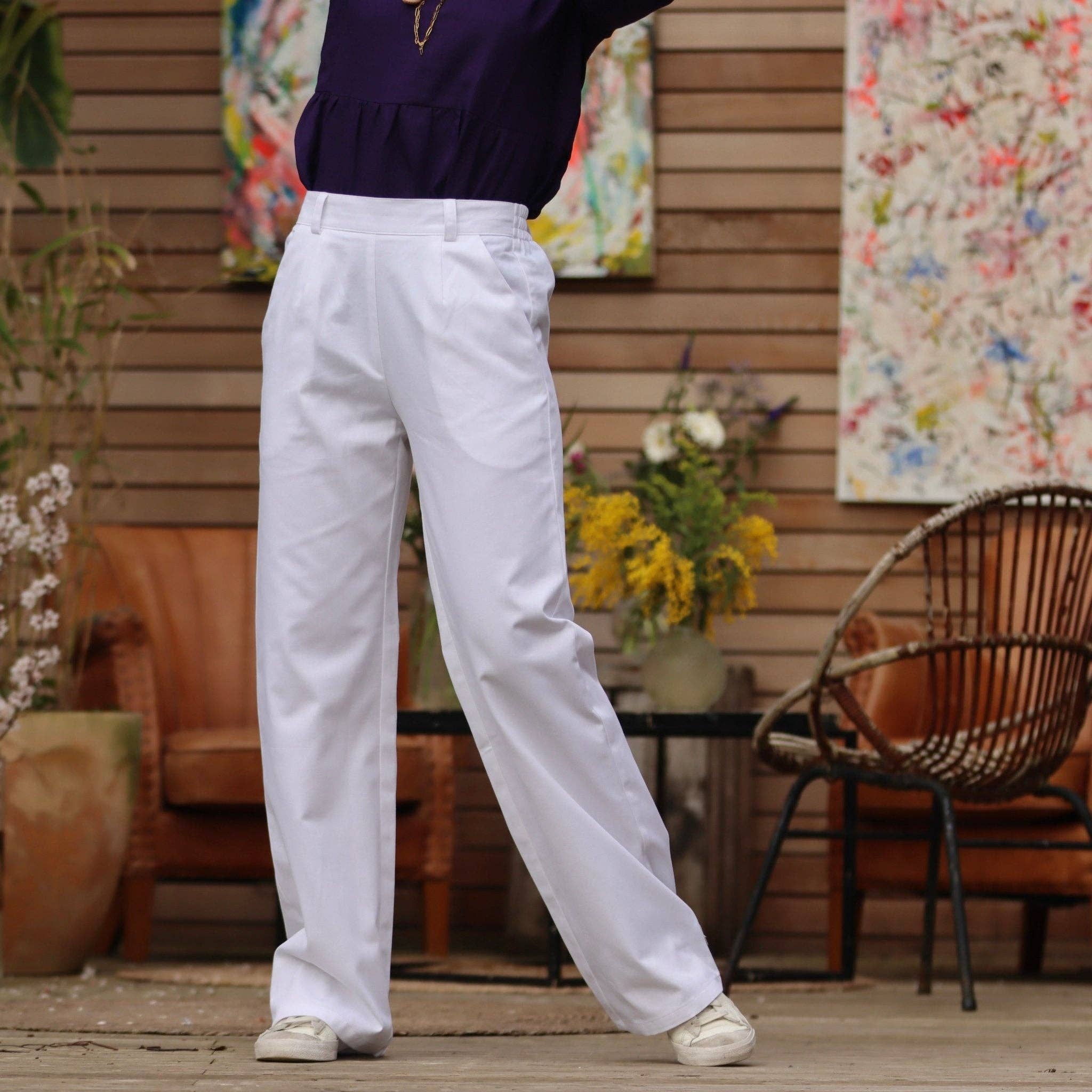 Bredbenta sammetsbyxor med resår i midjan och knappdesign. Har en avslappnad passform för en bekväm men ändå elegant look. Tyg: 93% polyester, 7% elastan Vikt: 0,6 kg