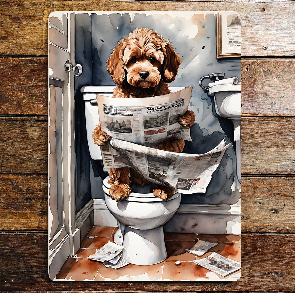 westie hund på toaletten, badrumsmetallskylt