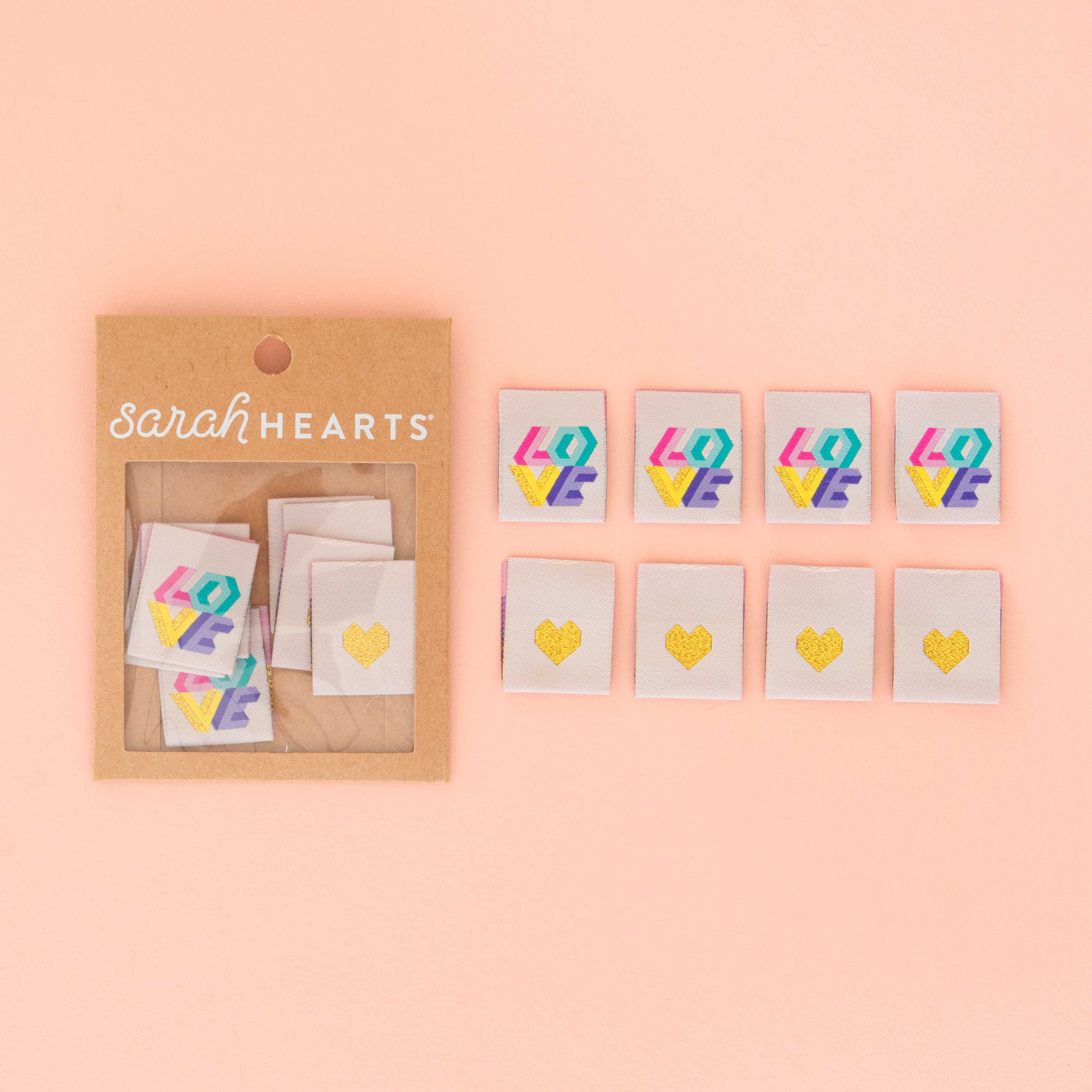 Tied with a Ribbon x Sarah Hearts-kollektion Ett måste för alla quiltbutiker! Dessa färgglada etiketter har skapats i samarbete med den australiensiska quilteren Tied with a Ribbon och är perfekta att sy in i kanterna på quiltar. Varje etikett har regnbågstext på framsidan och ett stjärnmönster på baksidan. De vävda polyesteretiketterna tål tvätt och torktumling. - 8 etiketter per förpackning - Tillverkade etiskt i Kina och är OEKO-TEX Standard 100-certifierade - Varje etikett är 5 cm x 3 cm - Vikta på mitten, kan sys in i vilken söm som helst - Polyester - Maskintvätt kallt, torktumla på låg värme - Levereras i ett återvinningsbart Kraftkuvert med streckkodsetikett på baksidan