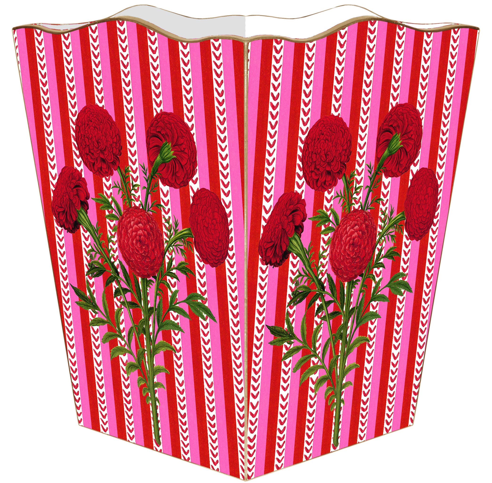 Våra papperskorgar är handgjorda på beställning av vårt team i Houston, Texas. Papperskorgen är gjord av trä. Konstverket är handklippt, decoupaged, och polerad av vårt lilla team av hantverkare. Varje papperskorg är noggrant målat guld eller silver runt kanterna som den perfekta finishen. Vi erbjuder två papperskorgstilar: Trä platt topp och trä scalloped topp. Vänligen meddela oss om du vill beställa en annan stil än bilden som visas i den här listan. Funktioner: • Mått: 9 ”Bredd x 9” Djup/längd x 11 ”Höjd. • Vattentålig exteriör. • Hållbara material av hög kvalitet. SKÖTSELRÅD: Rengör torka med en fuktig tvättduk eller pappershandduk. Fördjupa inte i vatten.