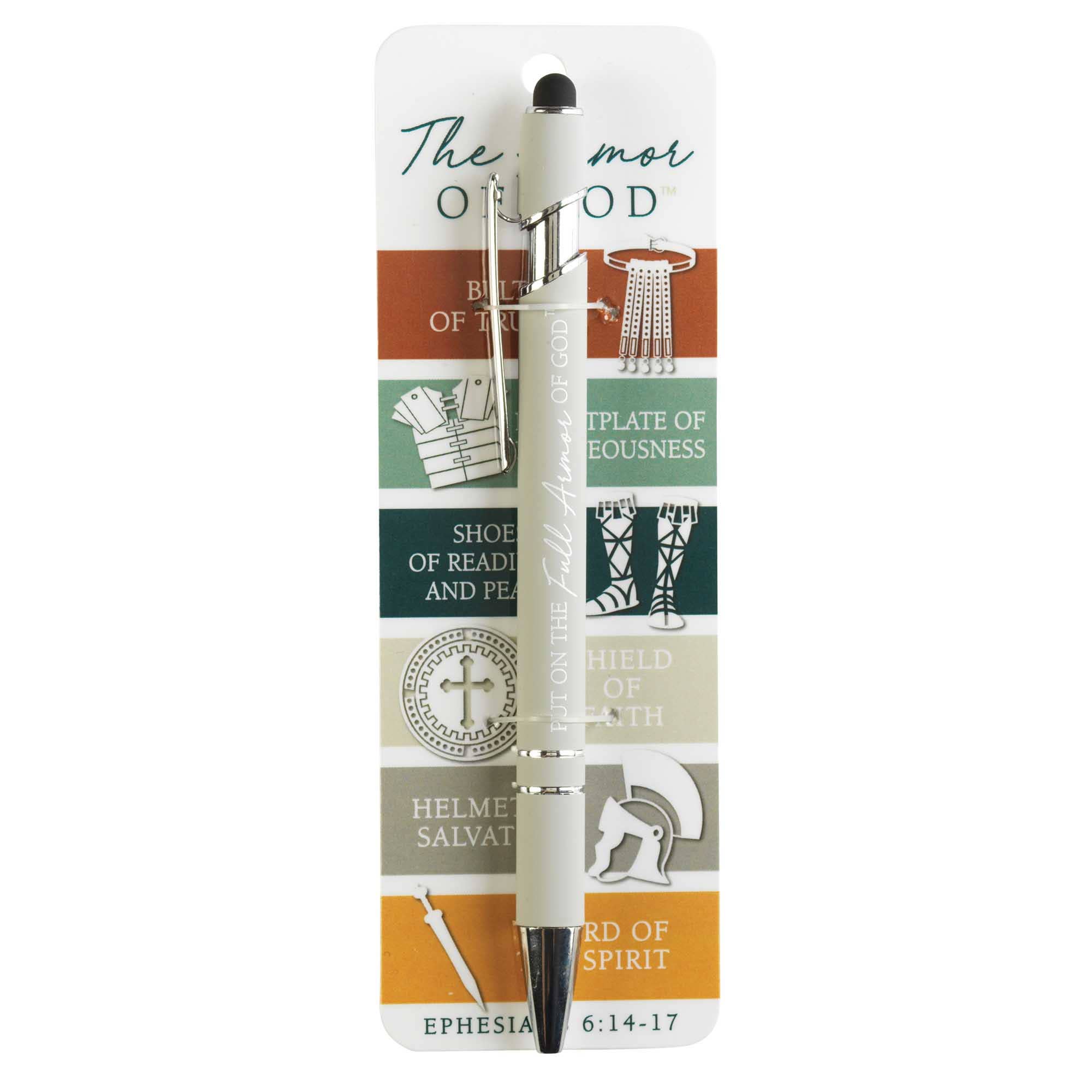 Denna attraktiva penna är en idealisk liten present till den speciella Guds man. Tjockt silver och svart fat har fisk- och korsdesign på klämman. Bläck är svart. Kommer på ett bokmärkesstorlekskort med Man of God på framsidan och en dikt på baksidan, tillsammans med Till och Från mellanslag. Diktord: Jag vet att jag kan göra allt när jag litar på Dig; du ger mig styrka och mod och du vägleder mig när jag gör det. Rikta mina vägar och gör dem raka, ty Du är klok och stark; Jag vet att jag kan lita på dig när saker går fel. Denne Guds man som älskar dig, Herre, som har återlösts av nåd, kommer att vandra i tro tills den dag jag ser dig ansikte mot ansikte. (Dikt av Alda Maria copyright Dicksons)