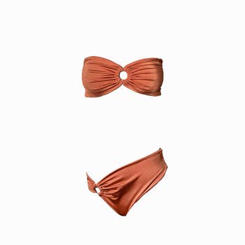 SALTU är en axelbandslös och lekfull bikini som imponerar. Denna tvådelade bikini har en nyckelhålsöppning framtill, figurnära band runt bålen och en asymmetrisk, djärv underdel. Finns i två färgvarianter. Om mig: - Sval och trendig känsla - Lekfull täckning - Axelbandslös modell - Inkluderar vaddering - Dubbel lager - Miljövänlig ECONYL® regenererad nylon - Hållbar badklädsel