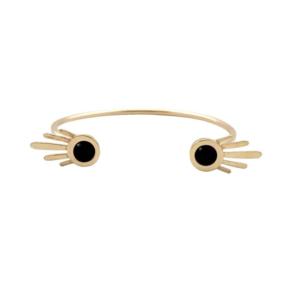 Handgjord i Chicago av Therese Kuempel - Finns i massiv mässing, vit brons eller sterlingsilver. - Vit brons är nästan identisk med Sterling Silver, vilket gör det till ett prisvärt alternativ till sterling, men ändå silverfärgad. Det är en slät, slitstark, giftfri metall som är mycket motståndskraftig mot fläckar. - All vår metall är nickelfri. - Manschetten är justerbar för att passa de flesta handleder.