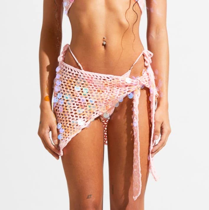 Föreställ dig själv som en modern siren, draperad i den eteriska lockelsen i detta fascinerande stycke. Kalani Tie Top är ett förtrollande plagg som väver samman sensualitet och sofistikering i en symfoni av stil. Viktiga funktioner: Netted Crochet: Den nätta designen faller över dina kurvor och retar glimtar av huden under och lämnar en känsla av mystik i ditt kölvatten. Iriserande paljetter: Förbered dig på att lysa som det månbelysta havet med iriserande paljetter som pryder varje tum av denna topp. Bell Sleeves: Klockärmarna som ger en touch av drama och känsla till varje rörelse. Komplettera utseendet genom att binda fronten i en flirtig rosett och uppmärksamma den delikat exponerade midriffen. Kombinera den med Kalani Mini Skirt eller din favoritdenim för en look som sömlöst övergår från dag till natt, vilket säkerställer att du gör en fängslande entré vart du än tar dig.