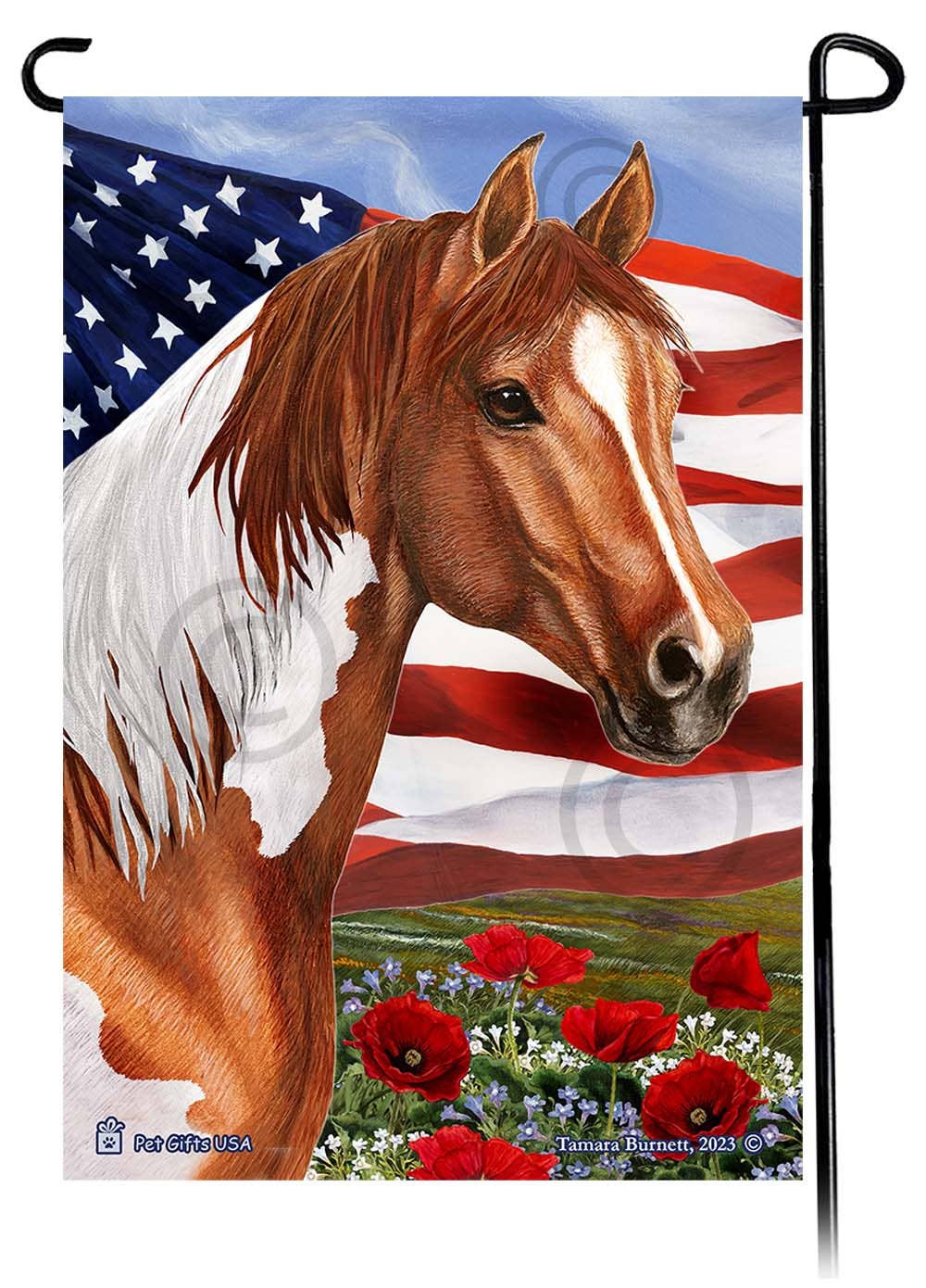 Quarter Horse Strawberry Roan - Patriotisk blommaträdgård...