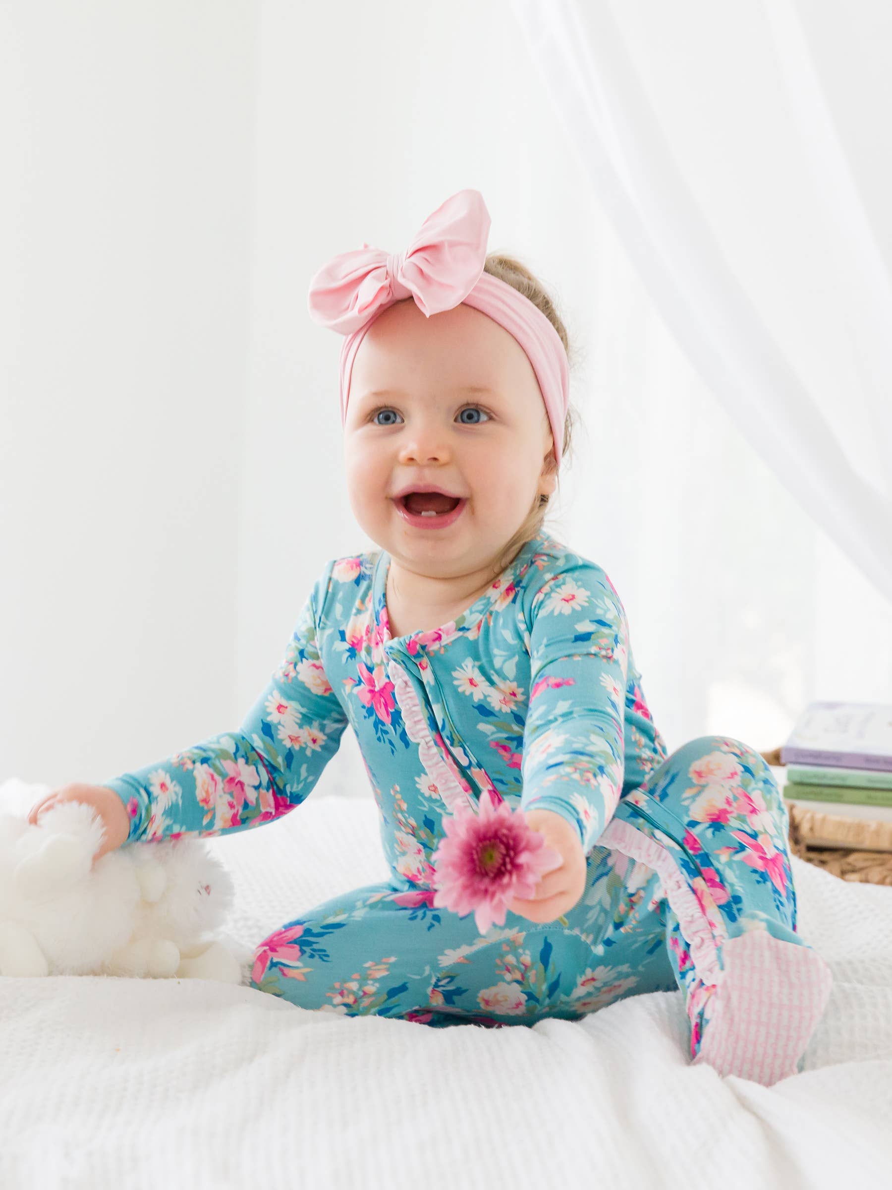 SoftSnooze™ Baby Girls Bambu Viskos Rosetter och Buketter Fotad Volang Pyjamas i Ett Stycke