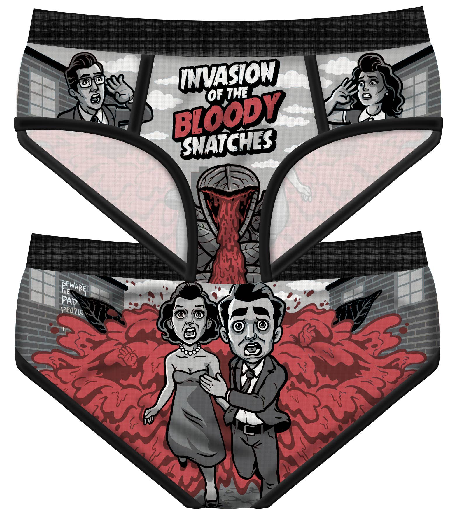 Trosor är 95% bomull och 5% elastan. Designad i Chicago, tillverkad i Kina. Dessa är nyhetsunderkläder och är inte avsedda att ersätta en tampong, kudde eller kopp. Placeringen av konstverket på plagget är ungefärlig och kan variera beroende på storlek.