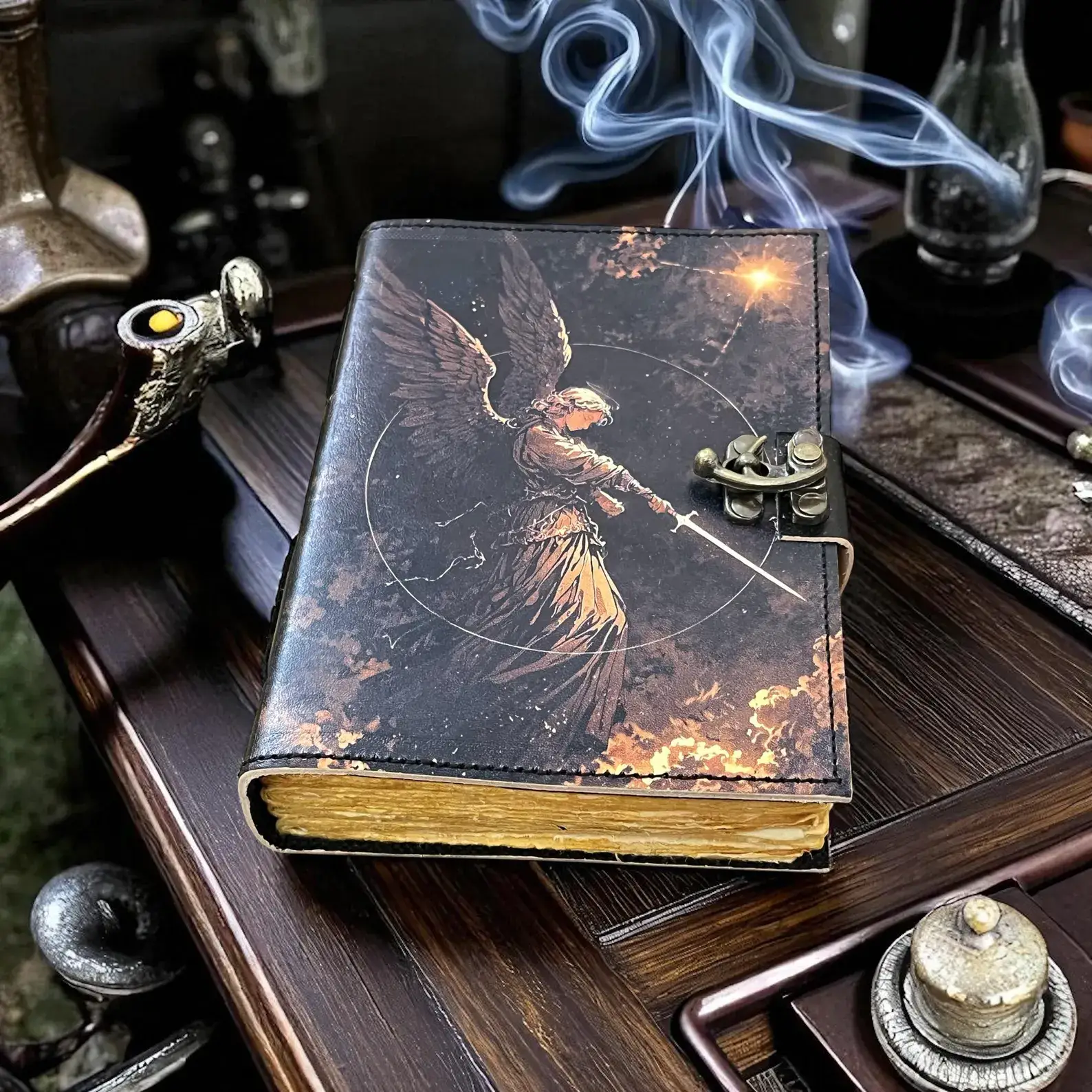 Vit Magi Trollbok, Lädergrimoire Journal, Skuggornas Bok, Wicca Tarot Anteckningsbok, Ockult Ritualskrivning, Handgjord Fantasy Anteckningsbok Tillverkad med utsökt uppmärksamhet på detaljer, denna vackert designade journal är mer än bara en skrivkompanjon; det är ett konstverk. Storlek: - Med måtten 7x5 tum är det den perfekta storleken för att stoppa ner i din väska eller ryggsäck, vilket gör den till en perfekt reskamrat för att fånga dina äventyr och reflektioner på språng. Omslaget på denna journal är ett mästerverk i sig. Tillverkat av äkta läder, utstrålar det tidlös elegans och hållbarhet. Lädrets rika, jordnära toner ger journalen en rustik charm. Sidor: - Inuti hittar du 200 sidor av högkvalitativt deckle-kantat papper som är perfekt för skissning, medan det unika deckle-pappret ger en touch av vintage sofistikering. Varje sida i denna journal är handriven, vilket ger en taktil och visuellt tilltalande upplevelse som skiljer den från vanliga anteckningsböcker, för att skriva ner dina tankar eller skriva ner dina reseminnen.