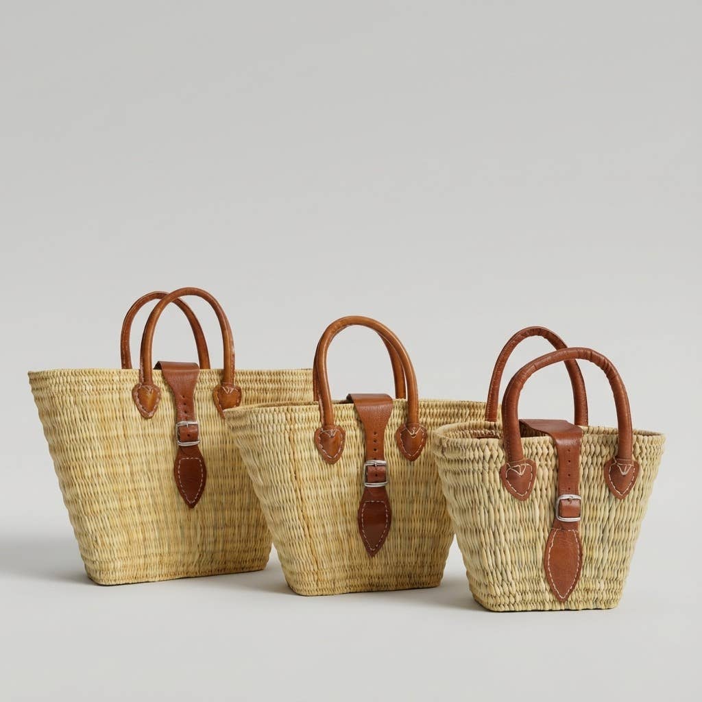 Natural Reed Baskets Set - Med Marockansk Handgjord Läder