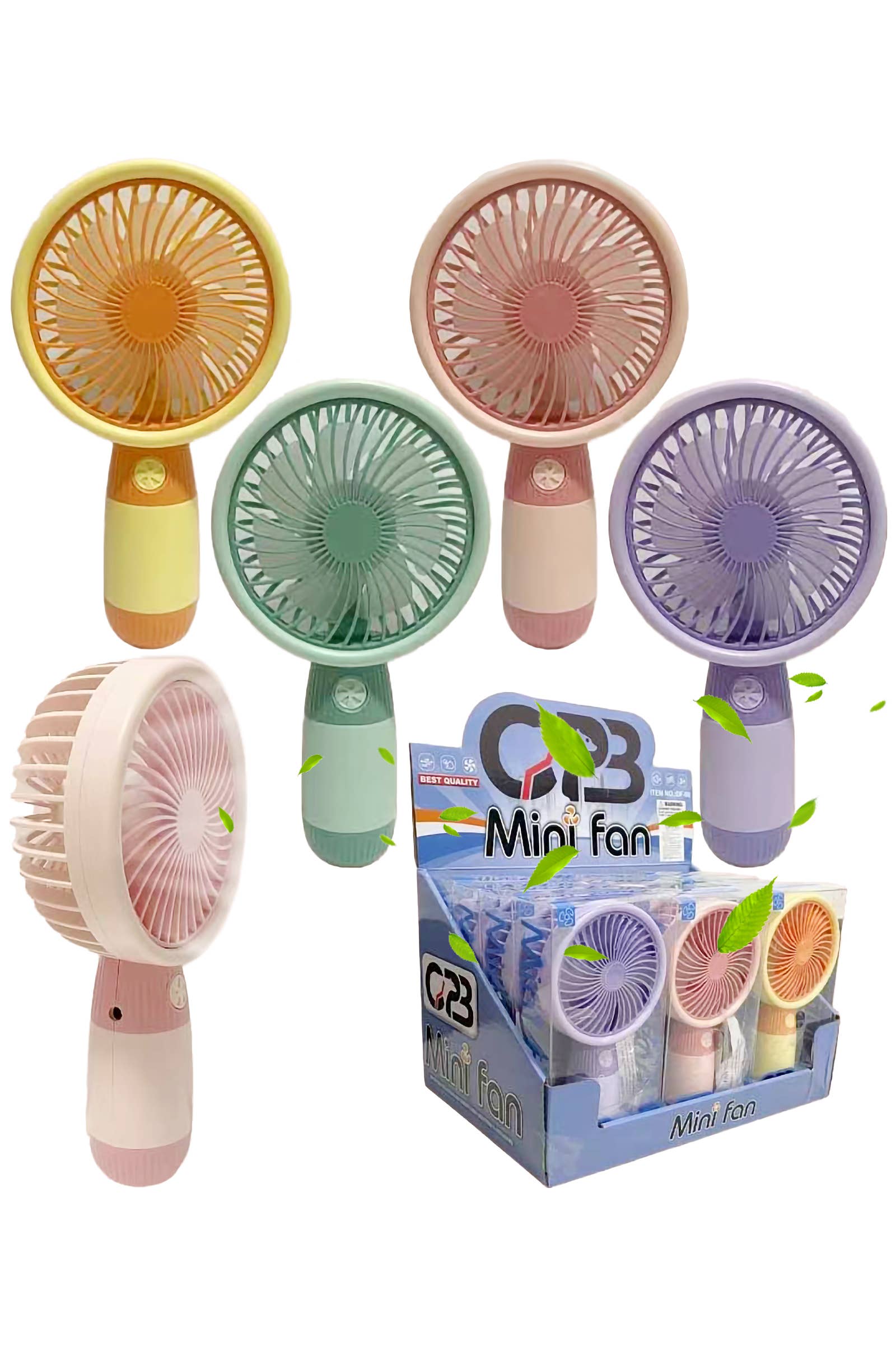 Pastellfärgad matt handhållen elektrisk fläkt med displaybox