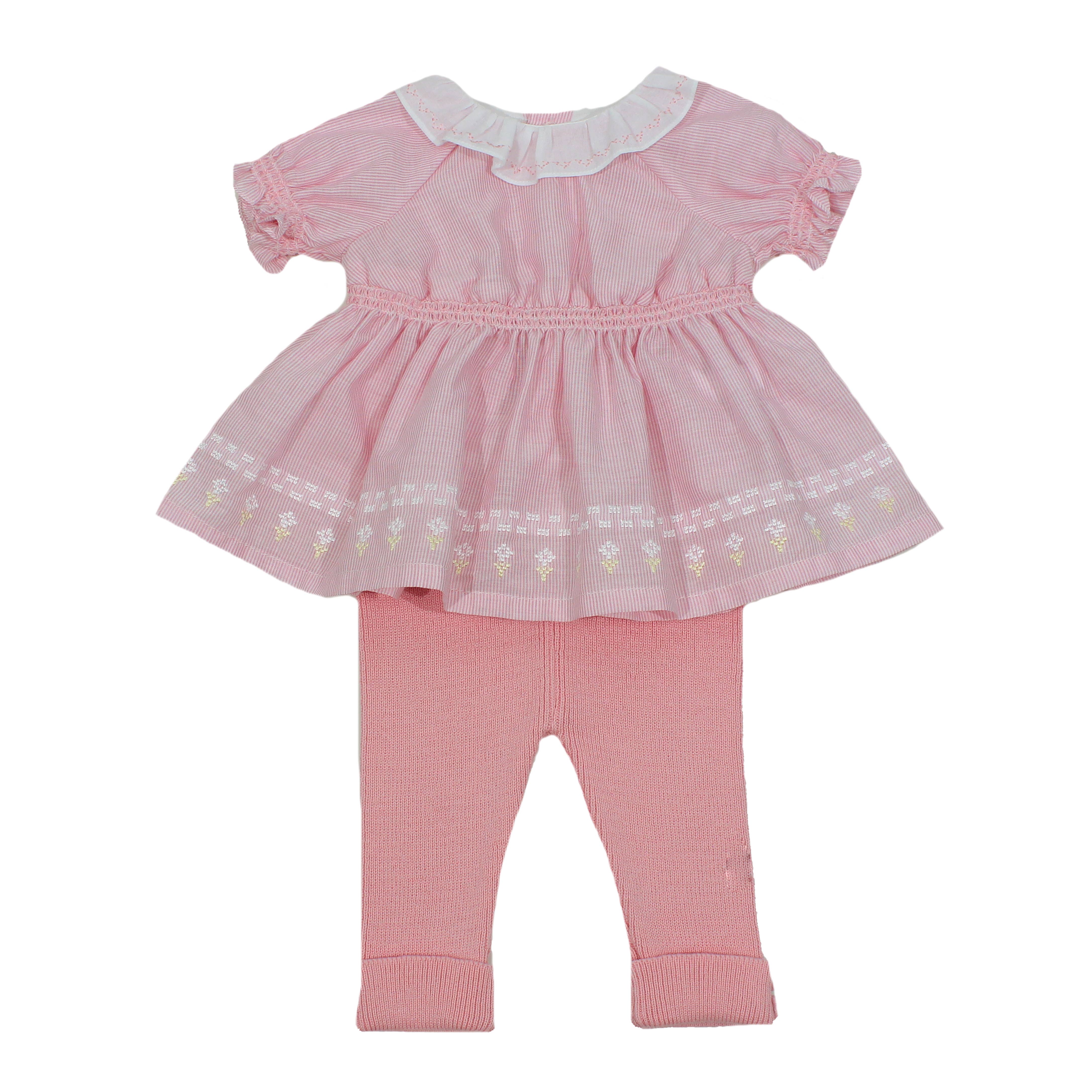 Fortfarande med björntema, men denna gång i ett stenfärgat stickat set, är Hudson helt enkelt bedårande! Tröjan har en motiv av en teddybjörn med en tofsad mössa som tittar fram ur en ficka. Kontrasterande mönster med grått, karamell och vitt i ränder runt fickan och ärmarna samspelar fint. Samma randmönster fortsätter runt anklarna på de stickade byxorna, som har en mjuk resår i midjan för babyns komfort. Allt avslutas med en söt matchande mössa. Detaljer: * Teddybjörn med tofsad mössa som kikar fram * Finns även i ljusblått * Mjuk resår i byxornas midja * Matchande mössa * 100% bomullsstickning * Levereras med en vacker trägalge