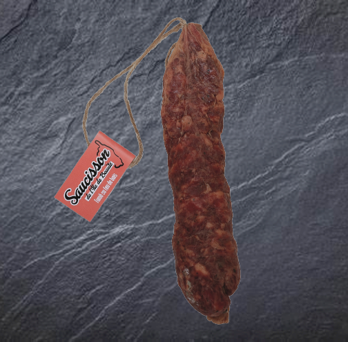 Saucisson d'Auvergne med Beaufort En smakrik korv berikad med bitar av Beaufort AOP, en ren alpin delikatess. Autentisk och tillverkad i Auvergne, ett oumbärligt val till aperitifen! Våra lufttorkade korvar är noggrant utvalda och levereras utan individuell förpackning i livsmedelsklassade lådor. Detta är ett uttryck för vårt engagemang att minska avfall. För försäljning att ta med finns även lämpliga kraftpåsar. Erkänd expertis och oöverträffad kvalitet Med nästan 30 års erfarenhet är vår partner en referens inom området, känd för sina lufttorkade produkter som förenar tradition och innovation. Varje korv lufttorkas i våra verkstäder i Lille av MALECOT-gruppen (ESAT des Papillons Blancs). Denna process säkerställer en torr kvalitet och optimal hållbarhet (DDM). Perfekt för barer, vinbutiker och delikatessbutiker, denna korv kommer att glädja de som älskar äkthet och hög kvalitet.