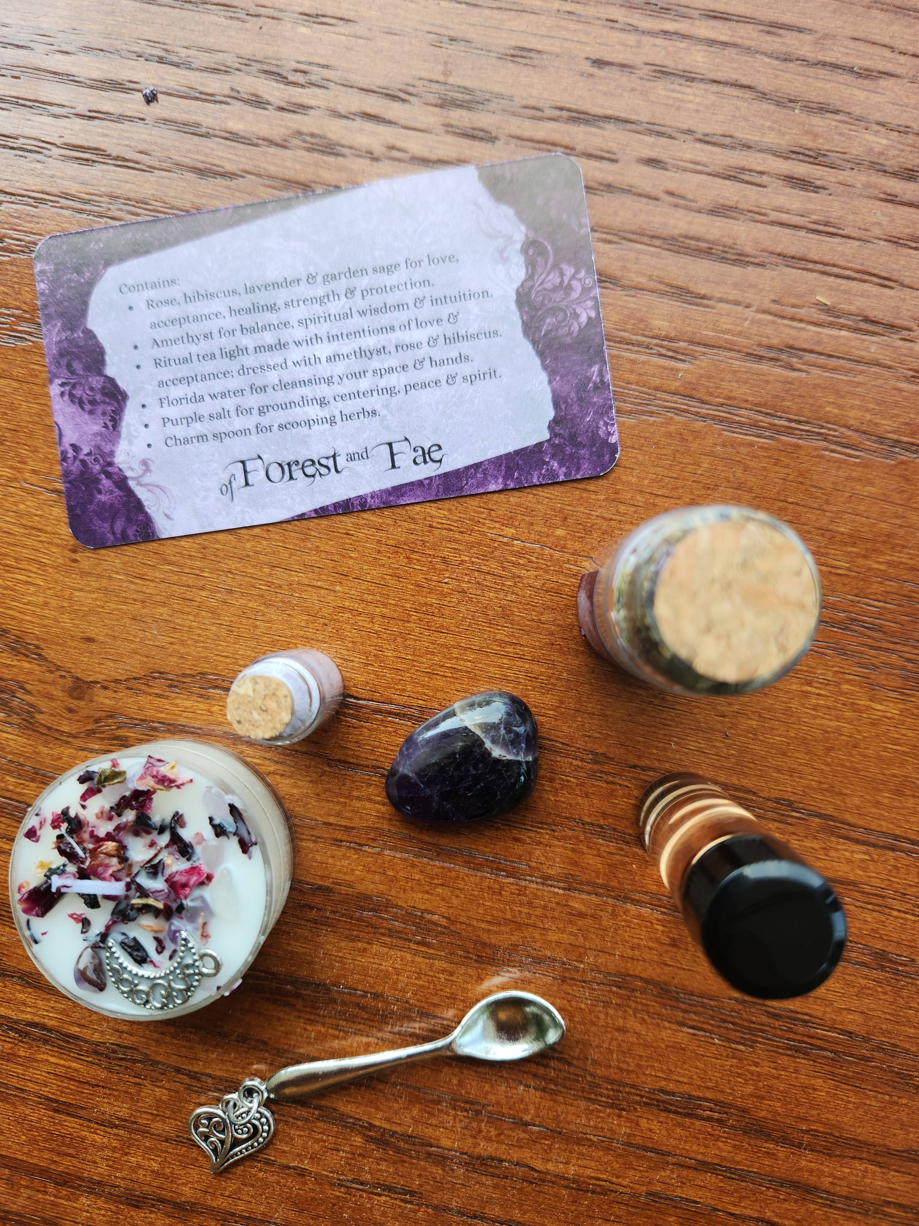 Jag skapade denna speciella Spellwork-blandning av örter som ska användas i dina spådoms- och intuitionsritualer eller praxis. Denna blandning innehåller malurt, helig basilika (tulsi), damiana, lagerblad och rölleka; alla utvalda för sina associationer med spådom, intuition, kommunikation, andlig styrka, manifestation och klara drömmar. Tillverkad med ekologiska örter kan den användas för att klä ljus, i stavflaskor, som lös rökelse, som ett erbjudande, i badet, eller hur du vill. Malurt - rengöring, skydd, spådom, klara drömmar, månarbete. Holy Basil (tulsi) - kommunikation, balans, spådom, andlig styrka. Damiana - kärlek, spådom, intuition, attraktion. Bay - skydd, anslutning, manifestation. Yarrow - läkning, skydd, styrka, kommunikation. Glasburk: 2,75 ”x 1,75" Våra produkter är avsiktligt och eftertänksamt skapade som verktyg för att inspirera dem som är på en trolldom eller andlig resa och kan användas under ritualer, trollformler, manifestation eller ceremoni.
