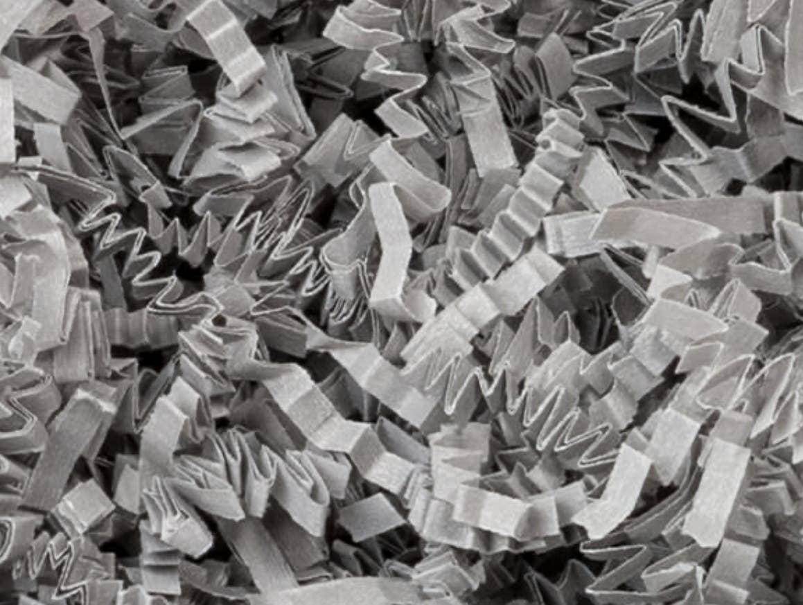 2,5 oz. återförslutningsbar påse Strimlor är 1/8" breda Tillverkad av 100% återvunnet papper