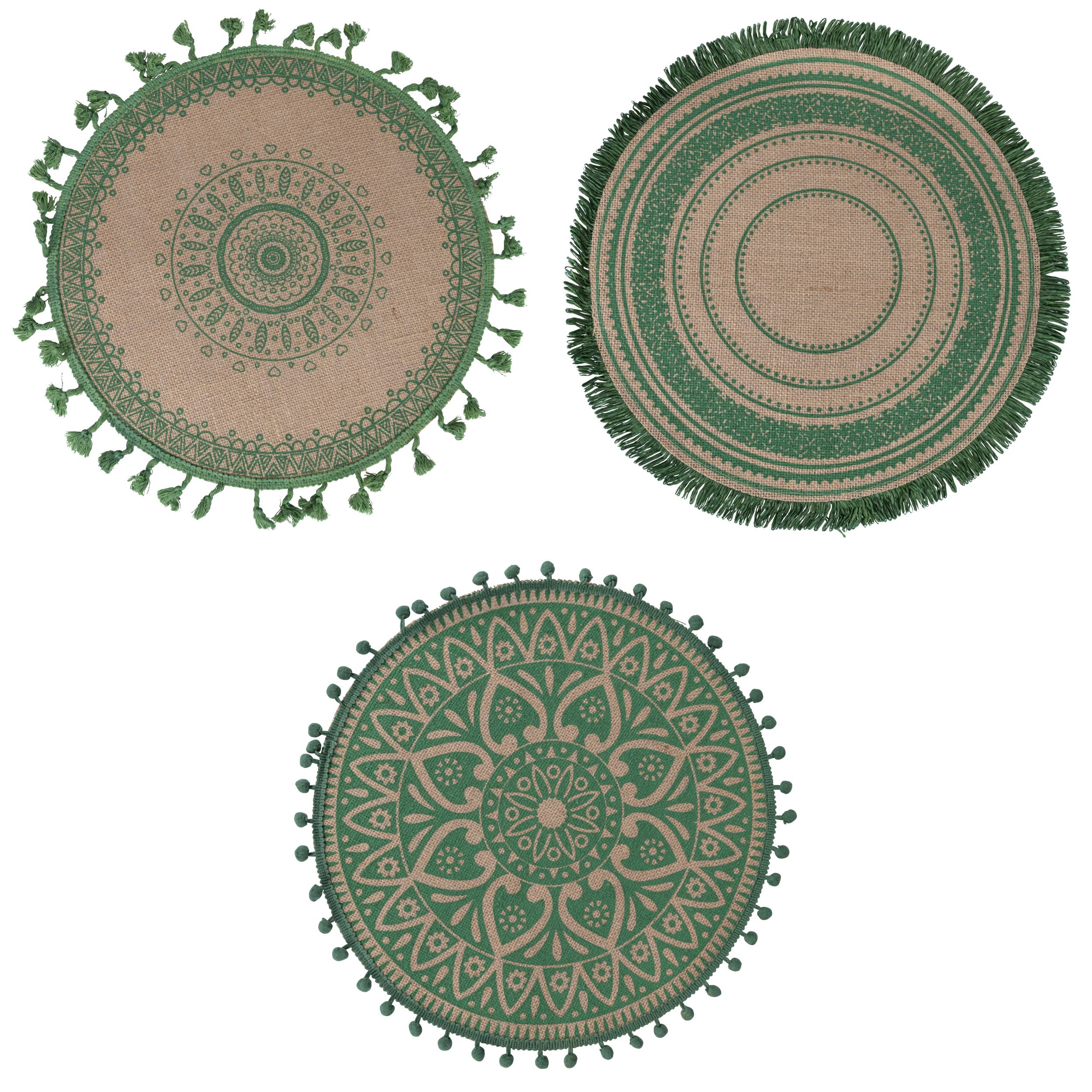 Vita runda underlägg i jute, 3 assorterade
