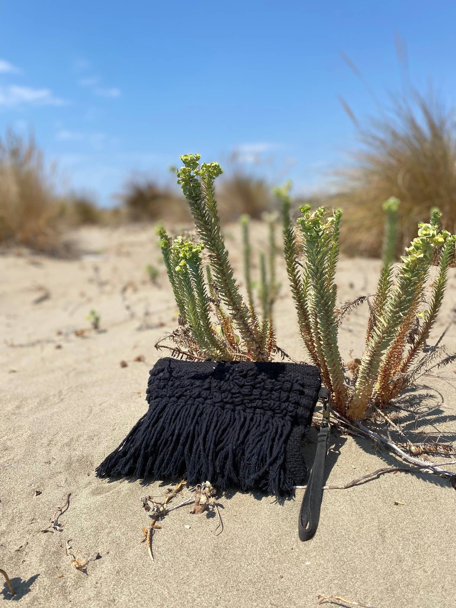 Denna eleganta fransväska är det perfekta tillbehöret för en boho-chic stil. Tillverkad i blå bomull kombinerar den stil och funktionalitet och passar utmärkt för alla tillfällen. 📏 Egenskaper: - Mått: 20x26 cm - Material: Bomull av hög kvalitet - Insida: Fodrad för extra hållbarhet - Förpackning: Individuellt i en påse av oblekt papper för en miljövänlig touch Perfekt för accessoarbutiker och boutiquer. Finns för grossistförsäljning!