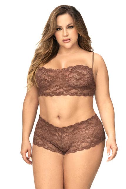 Lustig spets! Denna tvådelade spetsuppsättning är så mjuk, så sensuell och åh så sexig. Med en crop top i tankstil och klassisk kortbotten för pojkar, är detta sexiga set hållbart tillverkat av stretchspetsar av hög kvalitet och finns i en mängd olika vackra färger.