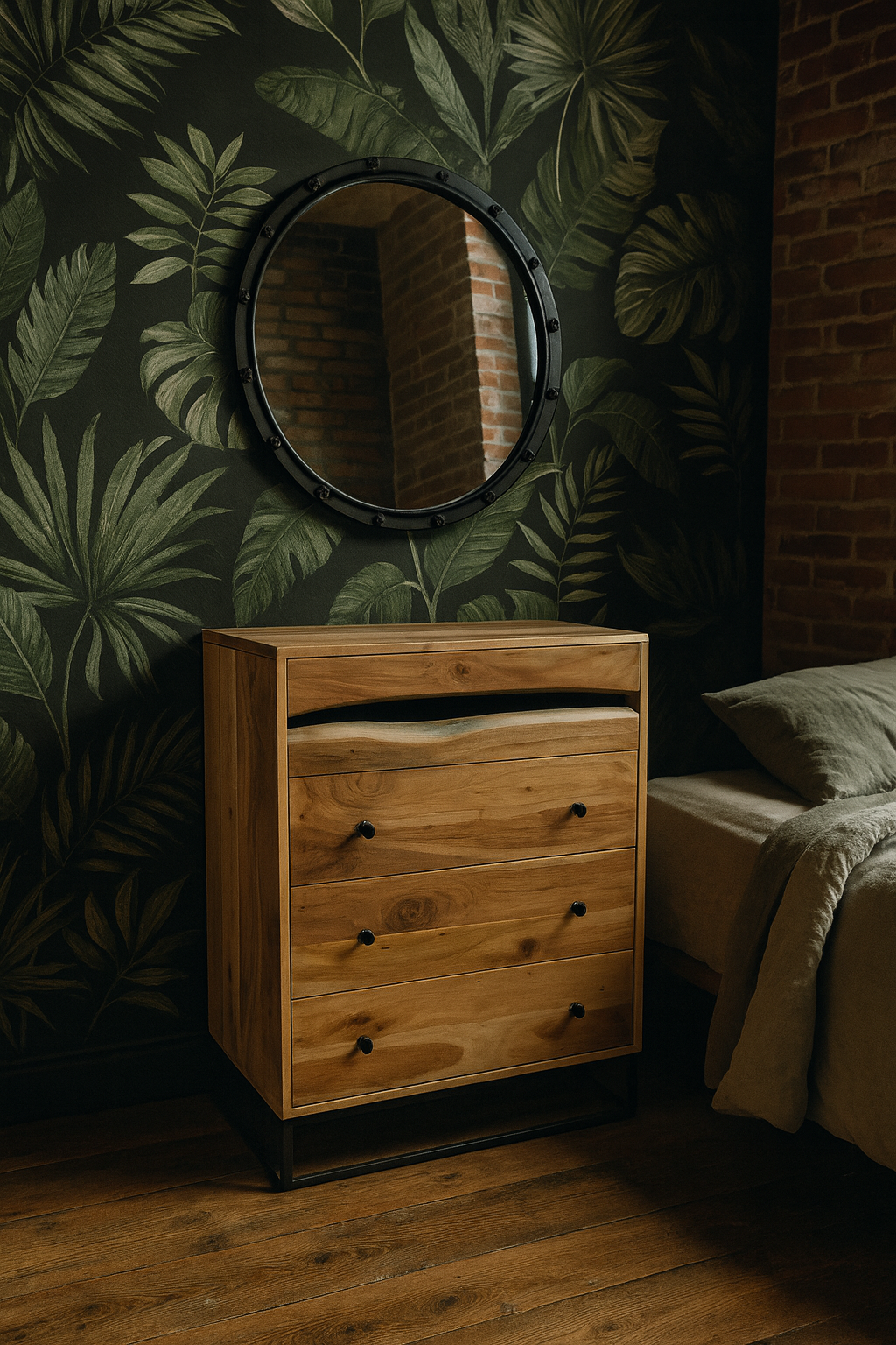 Handgjord Montessori-garderob med fyra hyllor, cirka 36,5 cm breda och 28 cm höga, samt ett klädområde med en stång cirka 60 cm bred. Den främjar barnets självständighet, hjälper till att organisera deras personliga saker och sparar tid när barnet är helt självständigt vid klädval. Vår garderob är särskilt utformad för barn eftersom: * Den saknar lådor, vilket förhindrar klämrisk för fingrar. * Korgar kan placeras på hyllorna för att sortera olika typer av kläder som strumpor, underkläder, pyjamas, byxor med mera. * Den har två klädstänger; den nedre är cirka 60 cm från golvet och den övre cirka 110 cm från golvet.