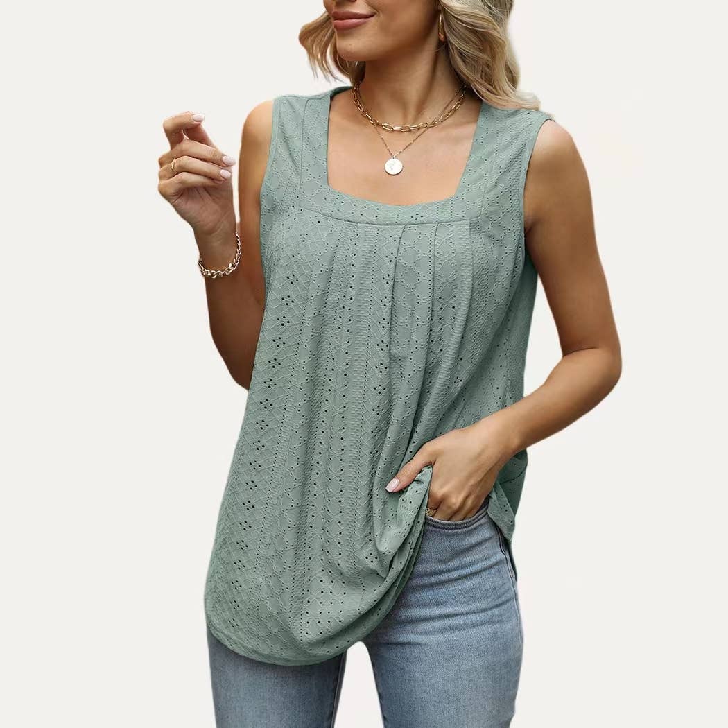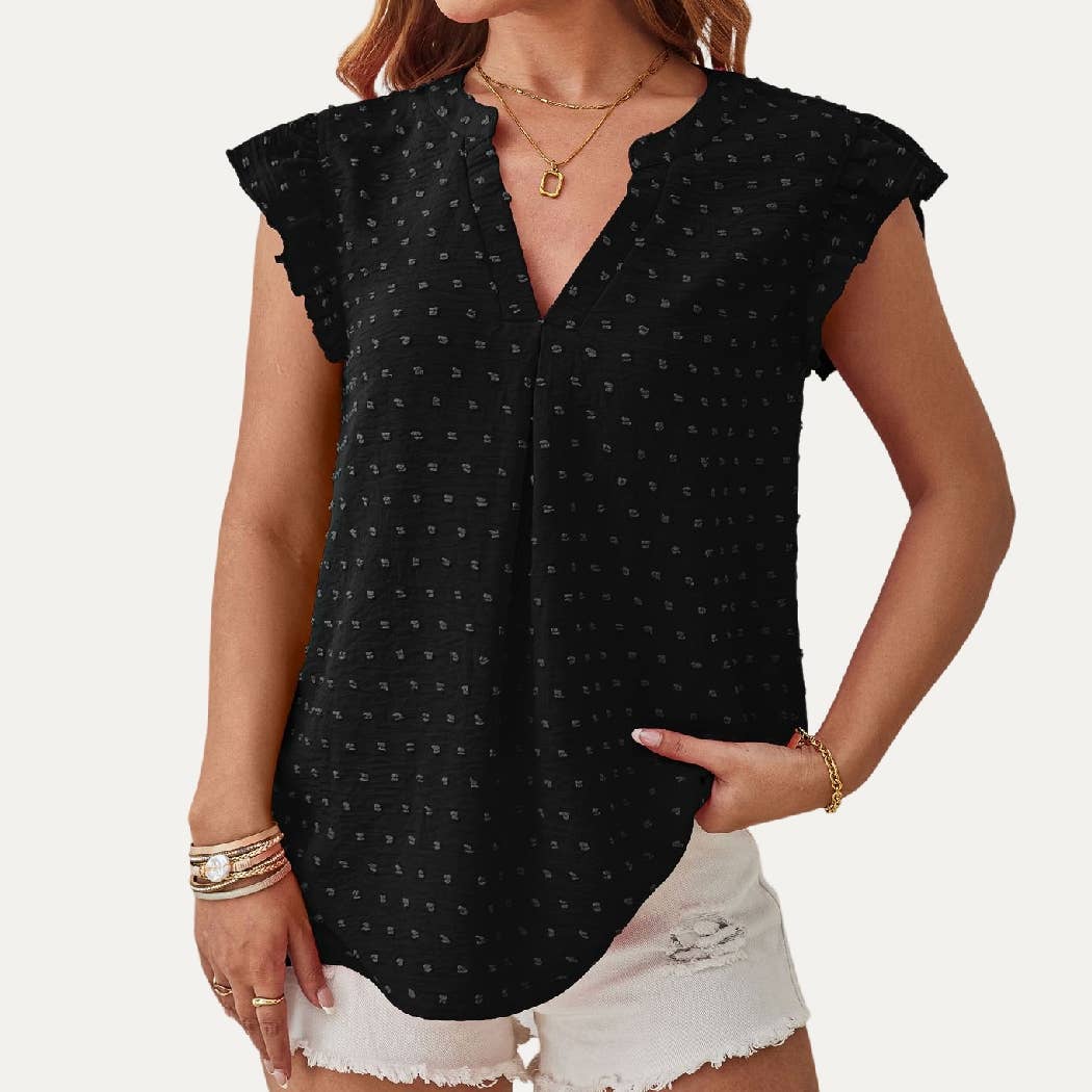 Chic Ruffle V-hals Genomborrad Pointelle Ren Kortärmad Topp