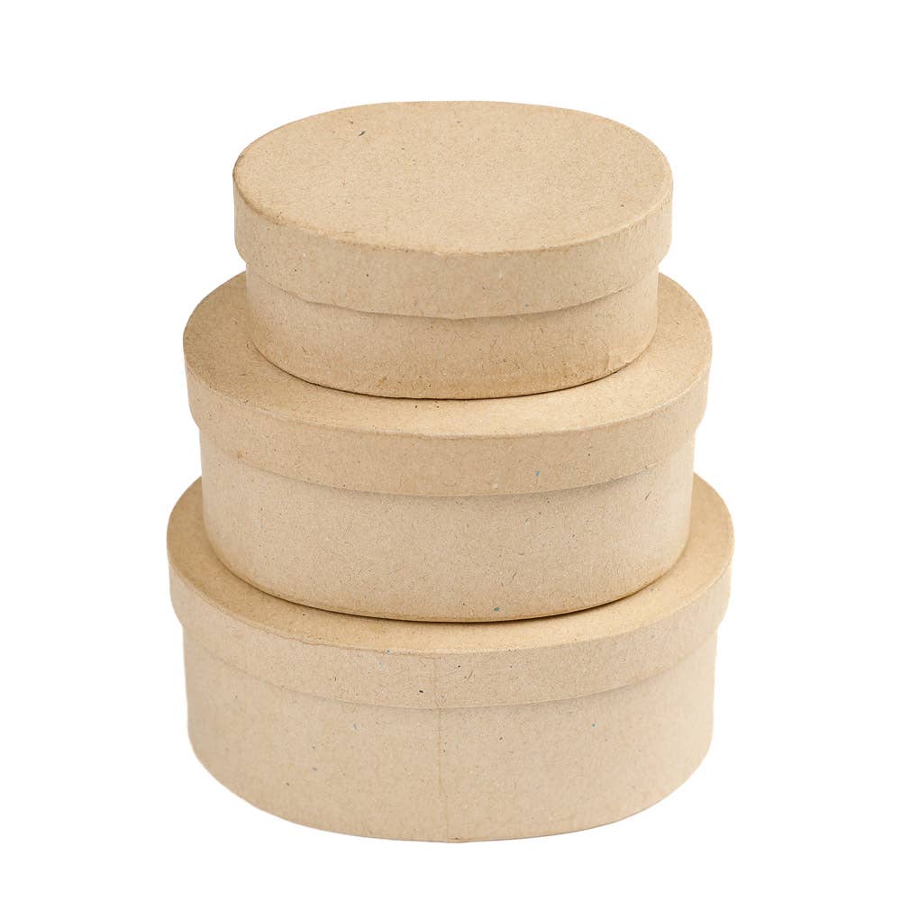 Färdiggjort 3-delat pappersmaché ovalt lådset i olika storlekar
