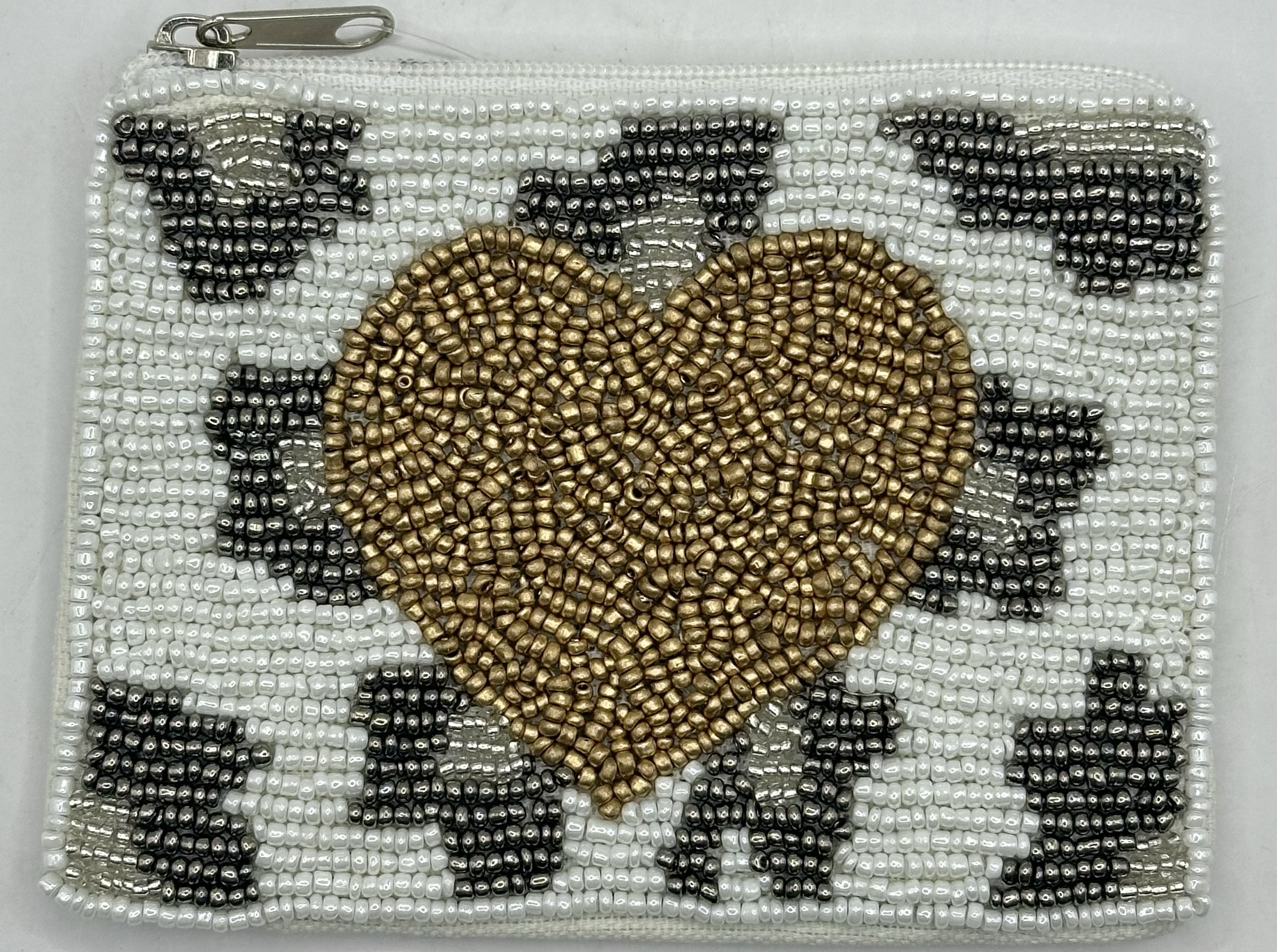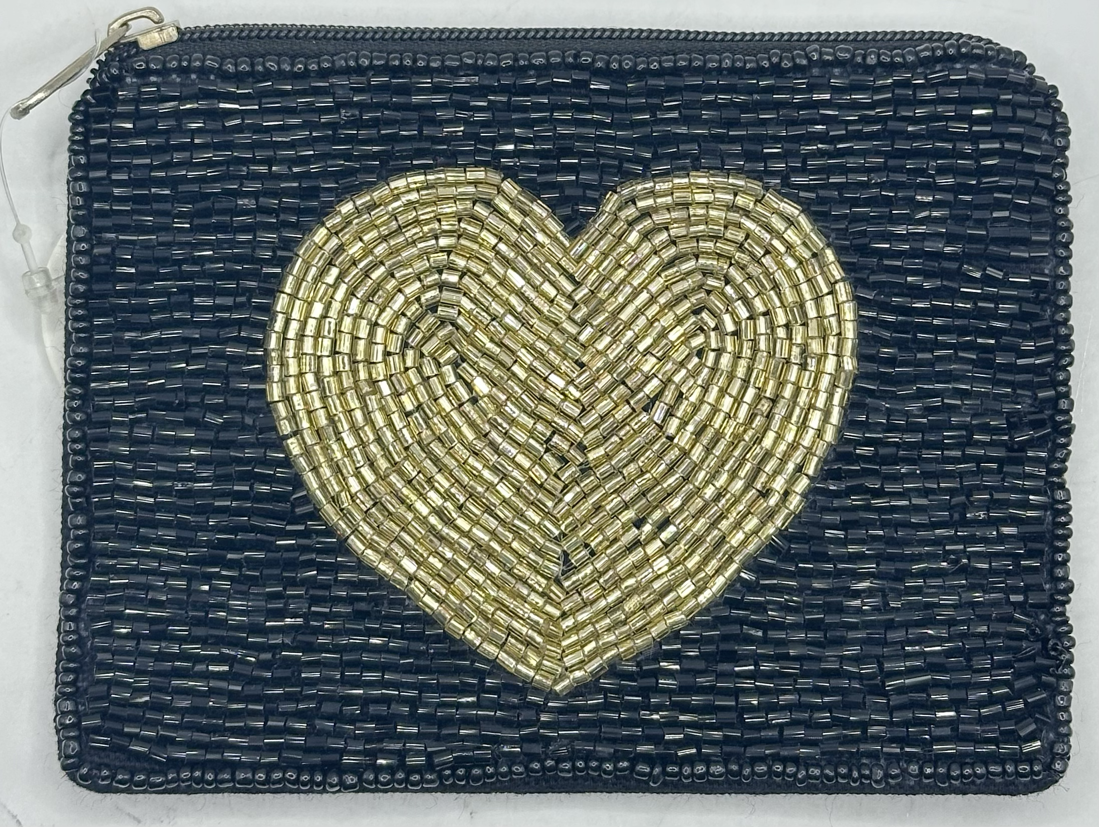 Upptäck Gold Heart Black Beaded Mini Pouch från Pizzazz, Inc. Denna utsökta myntväska kombinerar modern design med tidlösa konstnärskap hos våra indiska hantverkare. Handgjord med exceptionella tyger från hjärtat av Indiens bomullshandvävsindustri, det är lika distinkt som det är funktionellt. En symbol för vår öst-möts-väst-etos, den här påsen är perfekt för att hålla dina mynt, kort och små väsentligheter. Observera att varje del är unik och designen kan variera något.