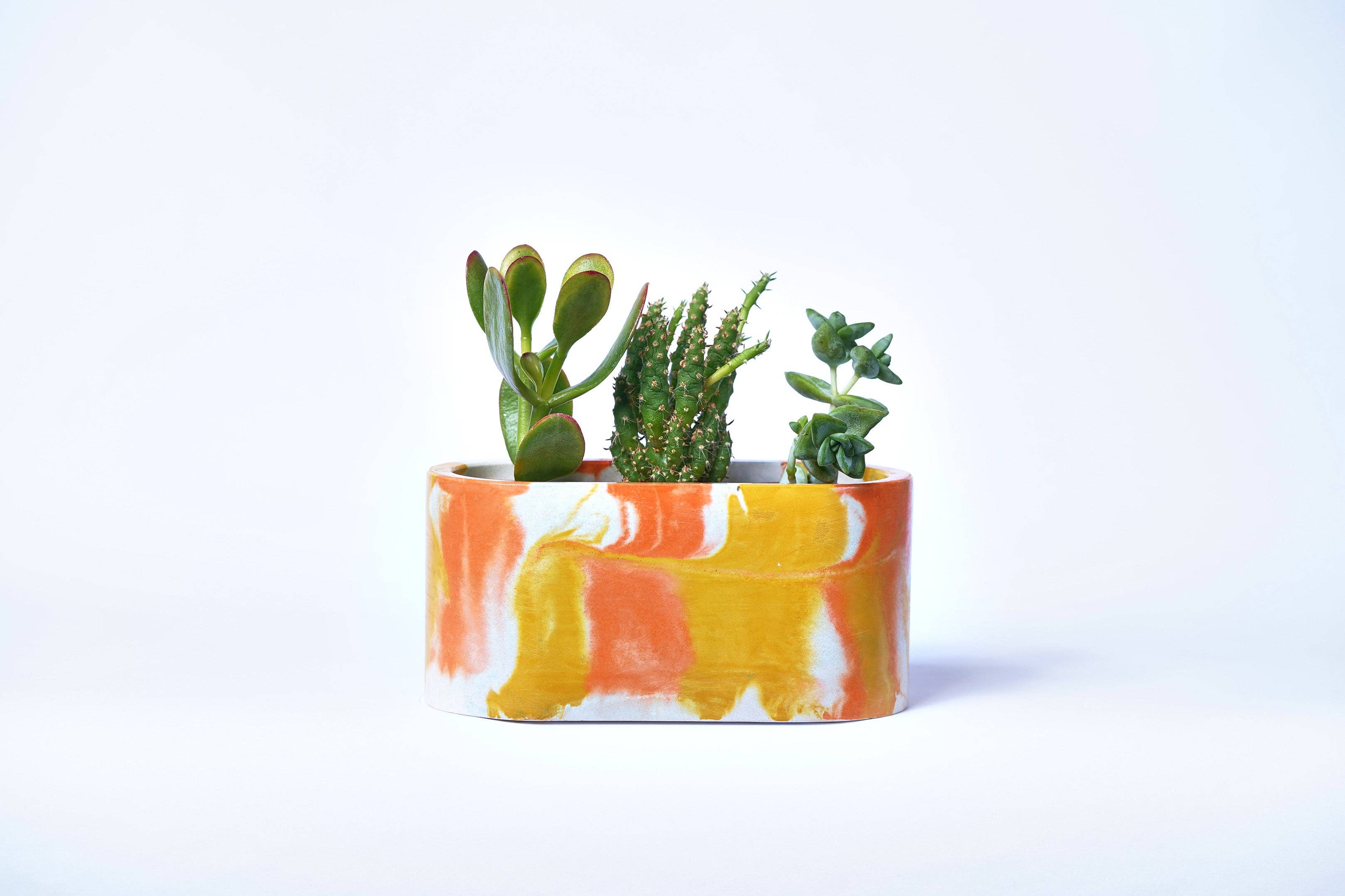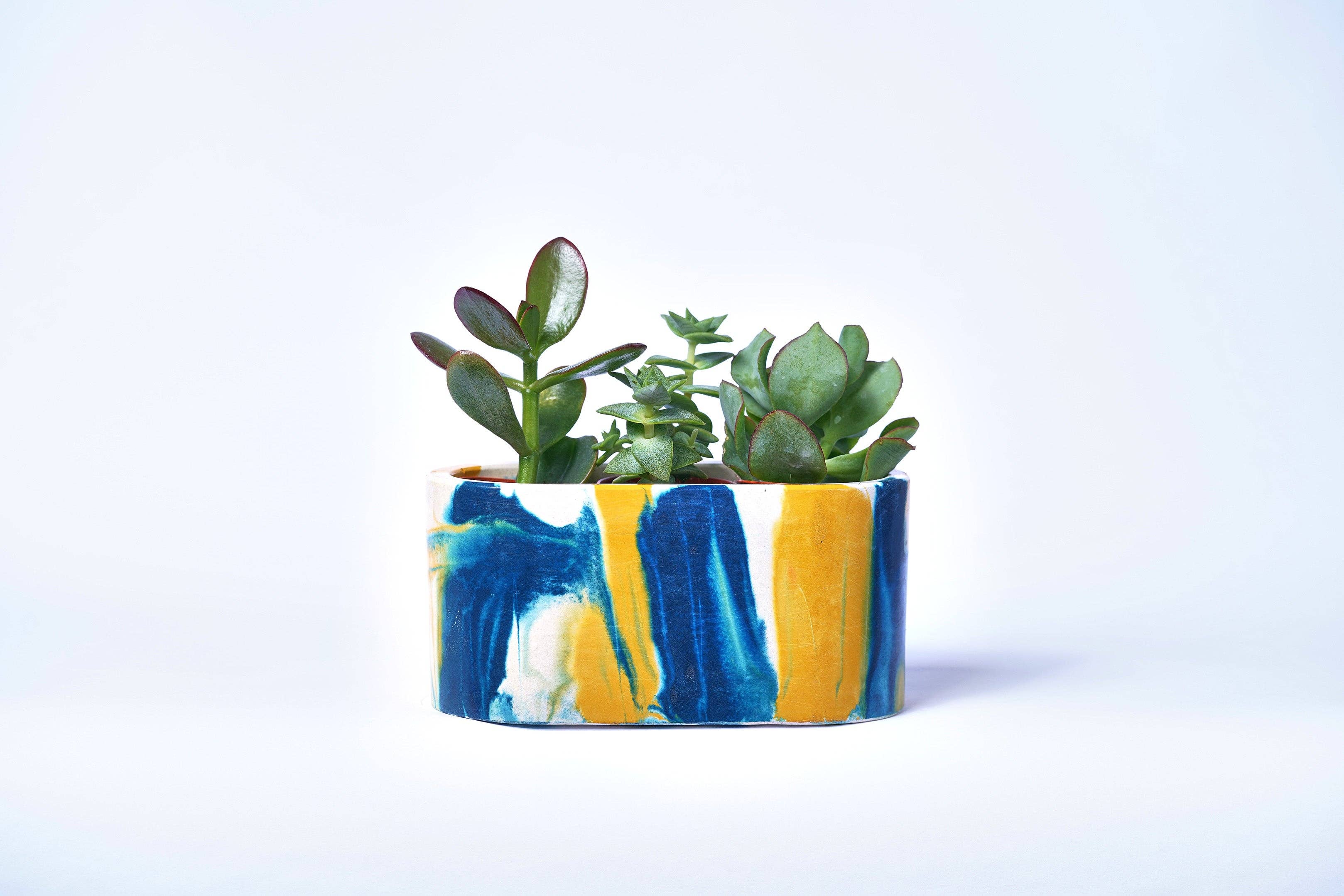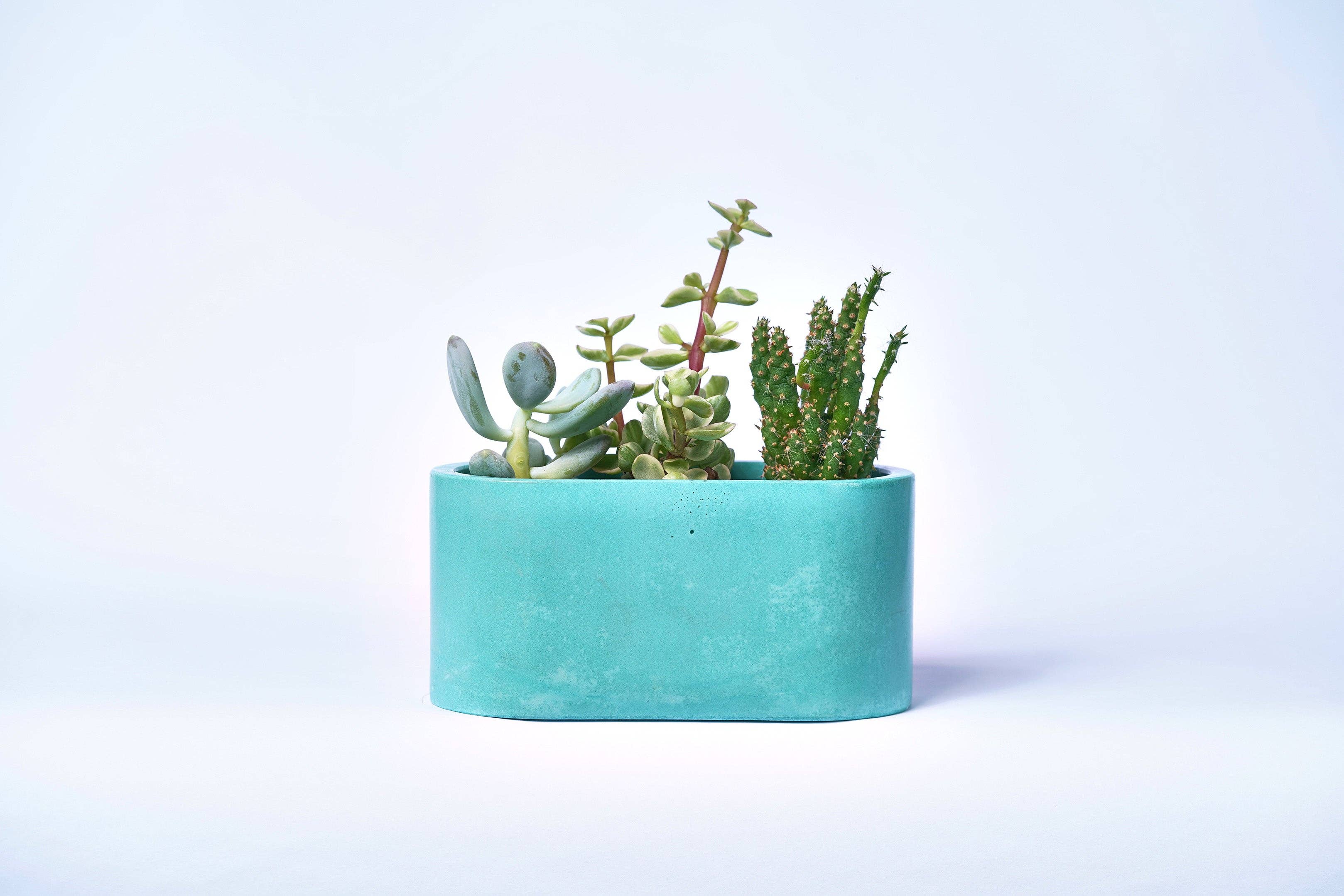 Denna mini kruka i betong med grön färg är hantverksmässigt tillverkad av designern Justine Moures varsamma händer. Tillverkad i vår verkstad i Paris, i det välkända Marais-kvarteret, skapades vår lilla kruka tack vare traditionellt hantverkskunnande och familjetradition. För att kunna skapa detta objekt, redo att ta emot dina vackraste växter, har betongen färgats med naturliga pigment direkt i massan. Var inte orolig för vattenintrång eftersom vår färgade betong skyddas av en ultratålig lack som applicerats under tillverkningen! Denna lack, som finns på krukans inre och yttre väggar, skapar en skyddande film som gör betongen vattenavvisande.